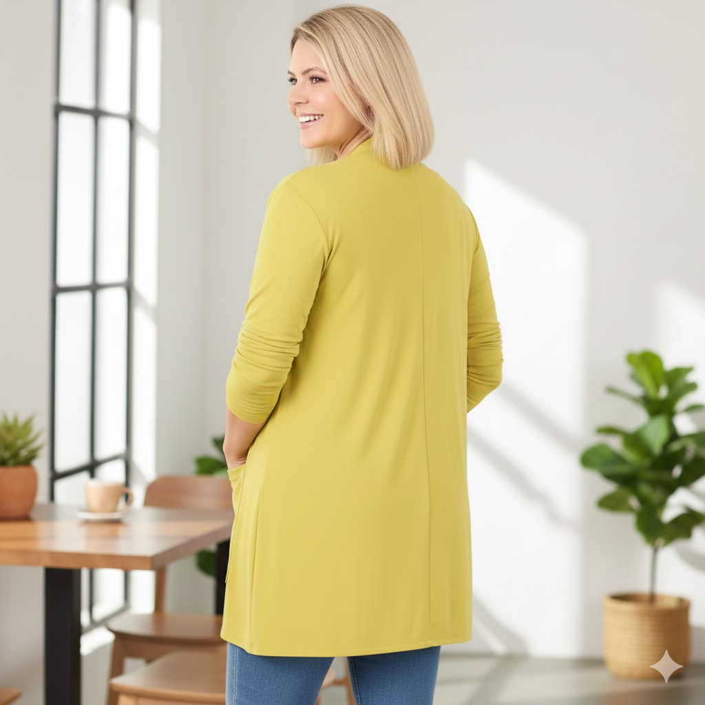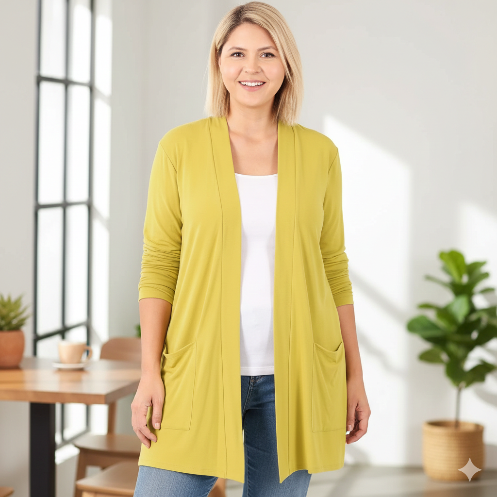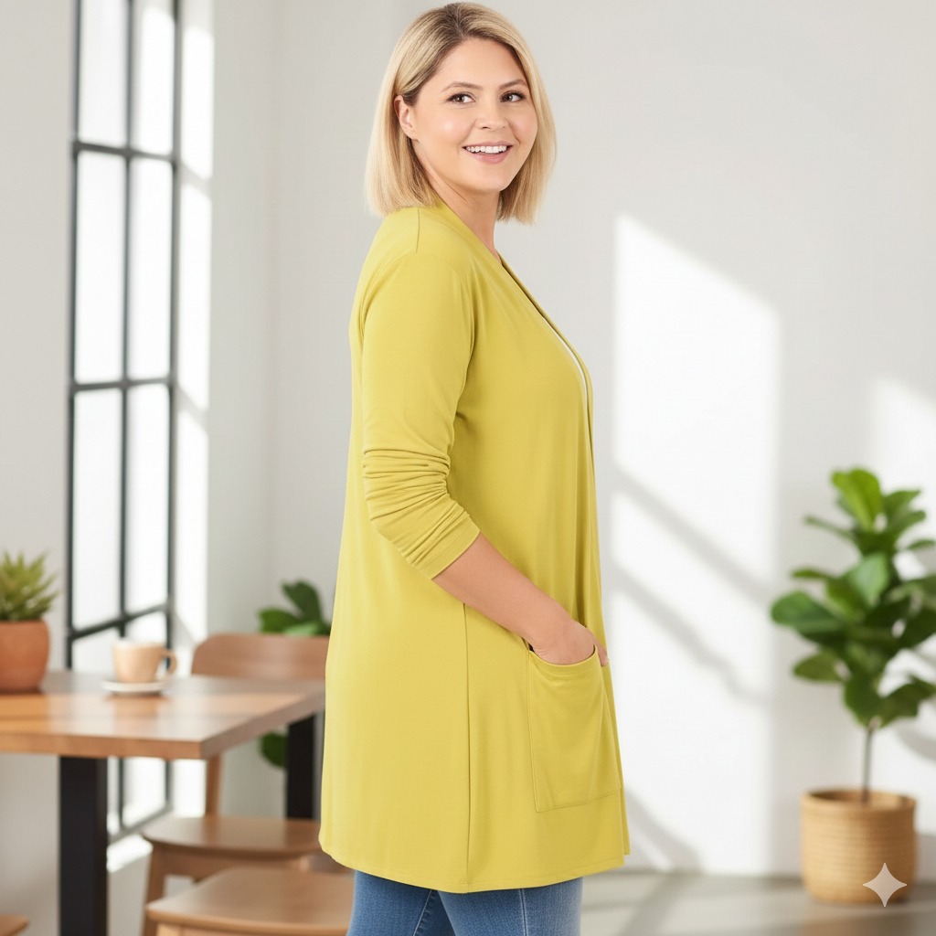 Plus Size Cardigan with Large Slouchy Pockets Golden Wasabi