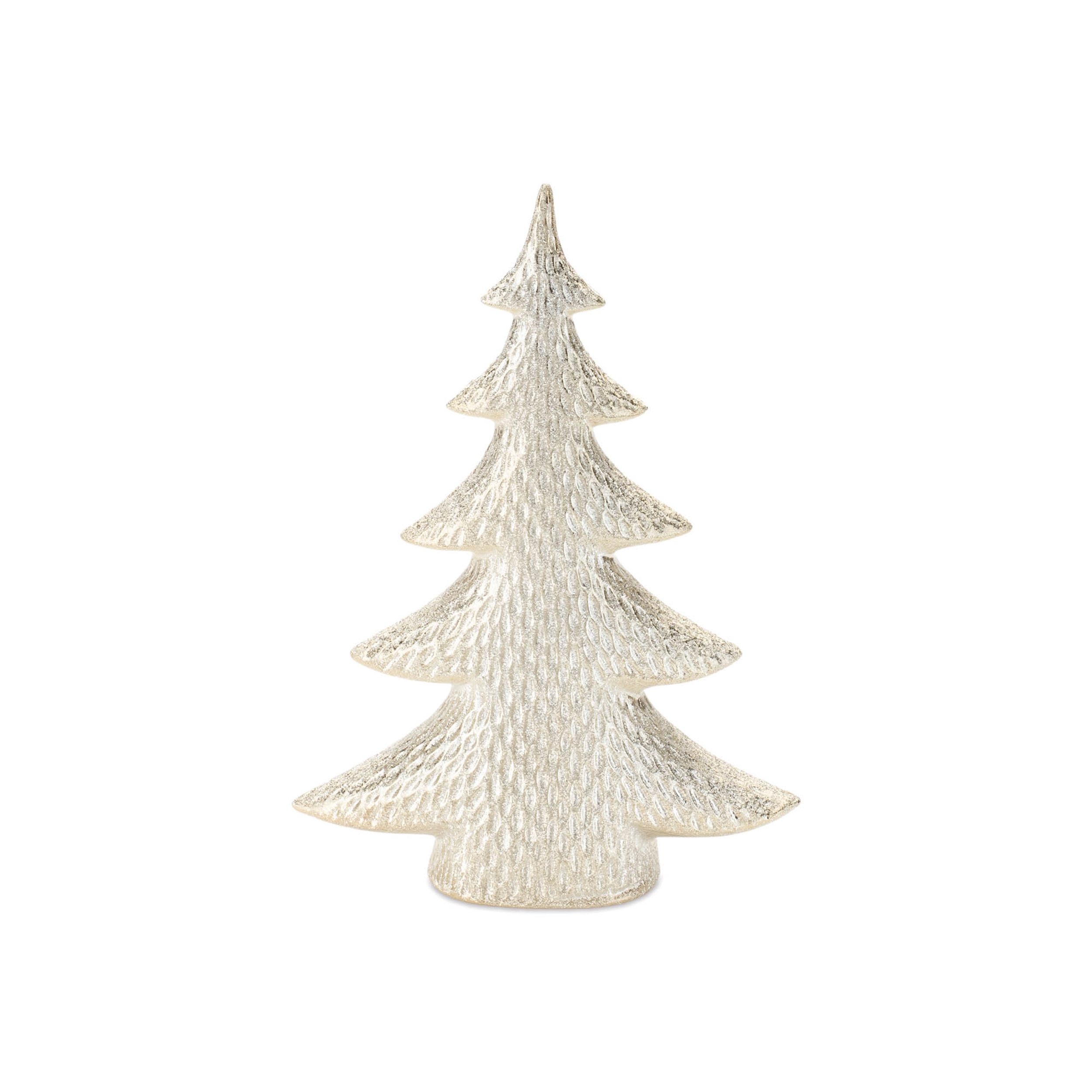 Add a touch of elegance to your holiday decor with the Porcelain Shimmer Pine Tree Set. Designed in wintry ivory and gold tones, these modern pine tree shapes feature a delicate notched pattern and a subtle shimmer finish for a refined festive look. Perfect for displaying on a tabletop, shelf, or mantle, they bring a sophisticated holiday charm to your seasonal decor. Style them alongside a floral arrangement, holiday deer, or Santa figurines for a warm and inviting holiday display.