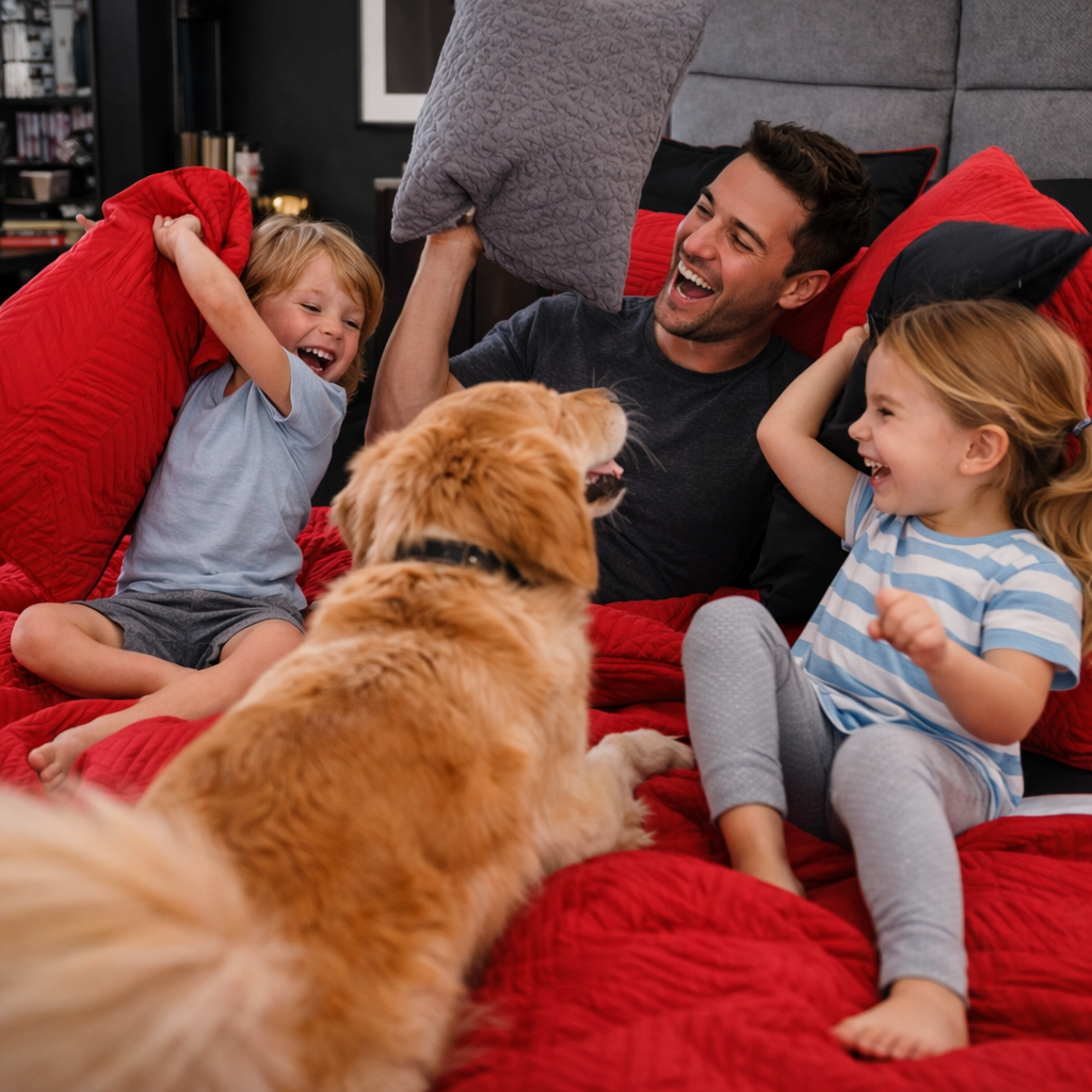 Reversible 3 Piece Quilted Bedspread SetUltra Soft and Cozy: Our Premium Quilts are everything you need for a dreamy night's sleep. With a luxurious breathable Microfiber filling, it is truly for all seasons. Enjoy feeling warm and snug on a chilly evening while still feeling just right the rest of the year. Durable - The patterned quilt is highly durable with a high tensile strength, making it strong and less likely to rip or tear. 100% microfiber, soft, durable, lightweight, fade-resistant, wrinkle-resistant, hypoallergenic and machine washable. Sizes: Queen and King. 3 piece bedspread set Color: One side is red. The other black. Note: We sell three types of quilted bedspreads. Heavy winter quilts, mid weight and light. These are light quilts for year round use. Dimensions: