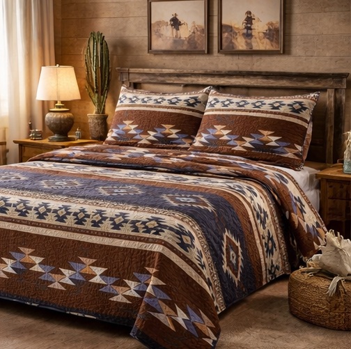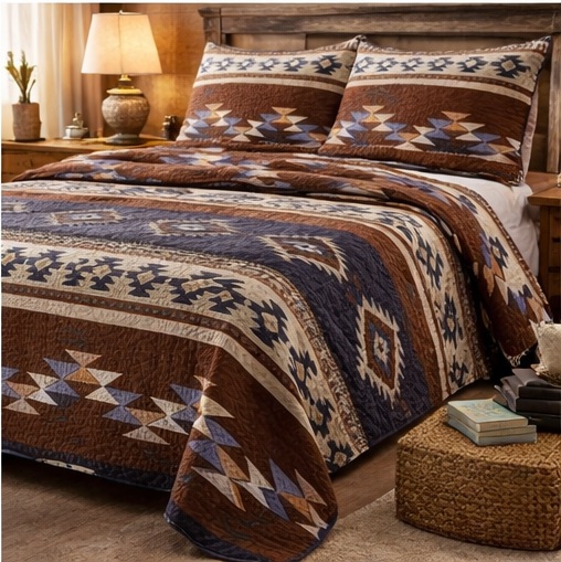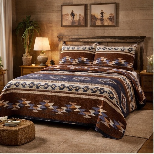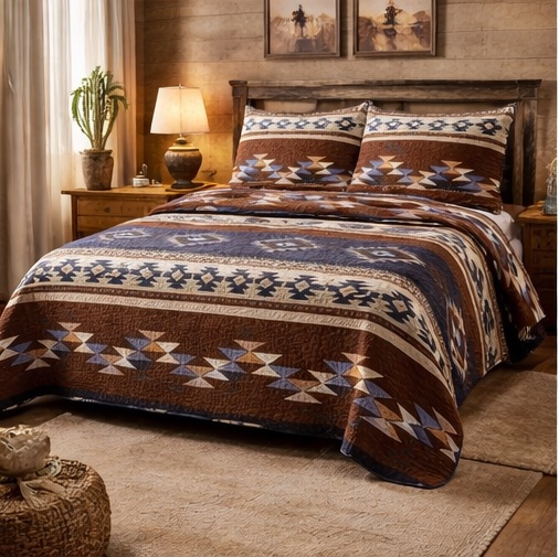 Southwestern Design 3 Piece Quilted Bedspread Set