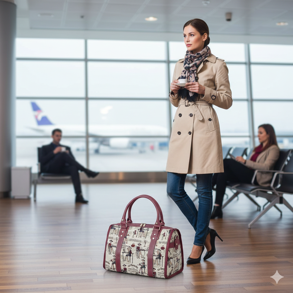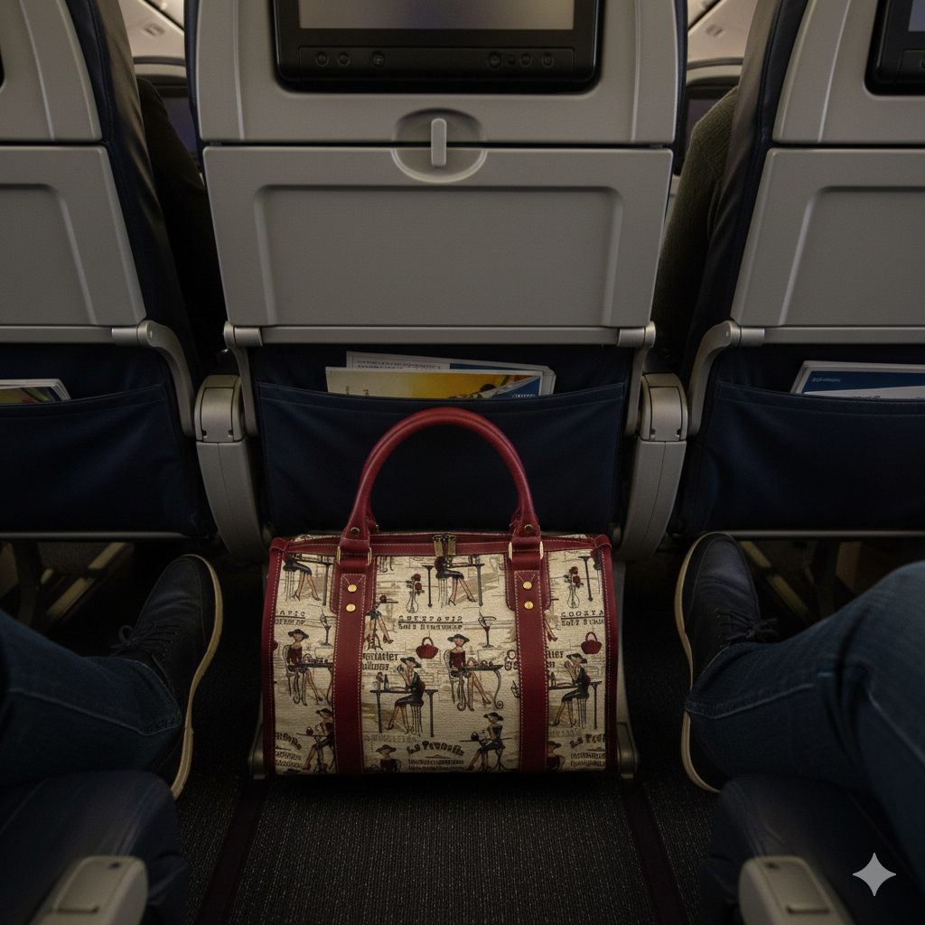 Just because you are traveling on a budget airline does not mean you have to carry a prison bag for essentials. Travel in style with this sophisticated tapestry duffle bag and nobody would suspect you to be a friend of Spirit or Frontier :)