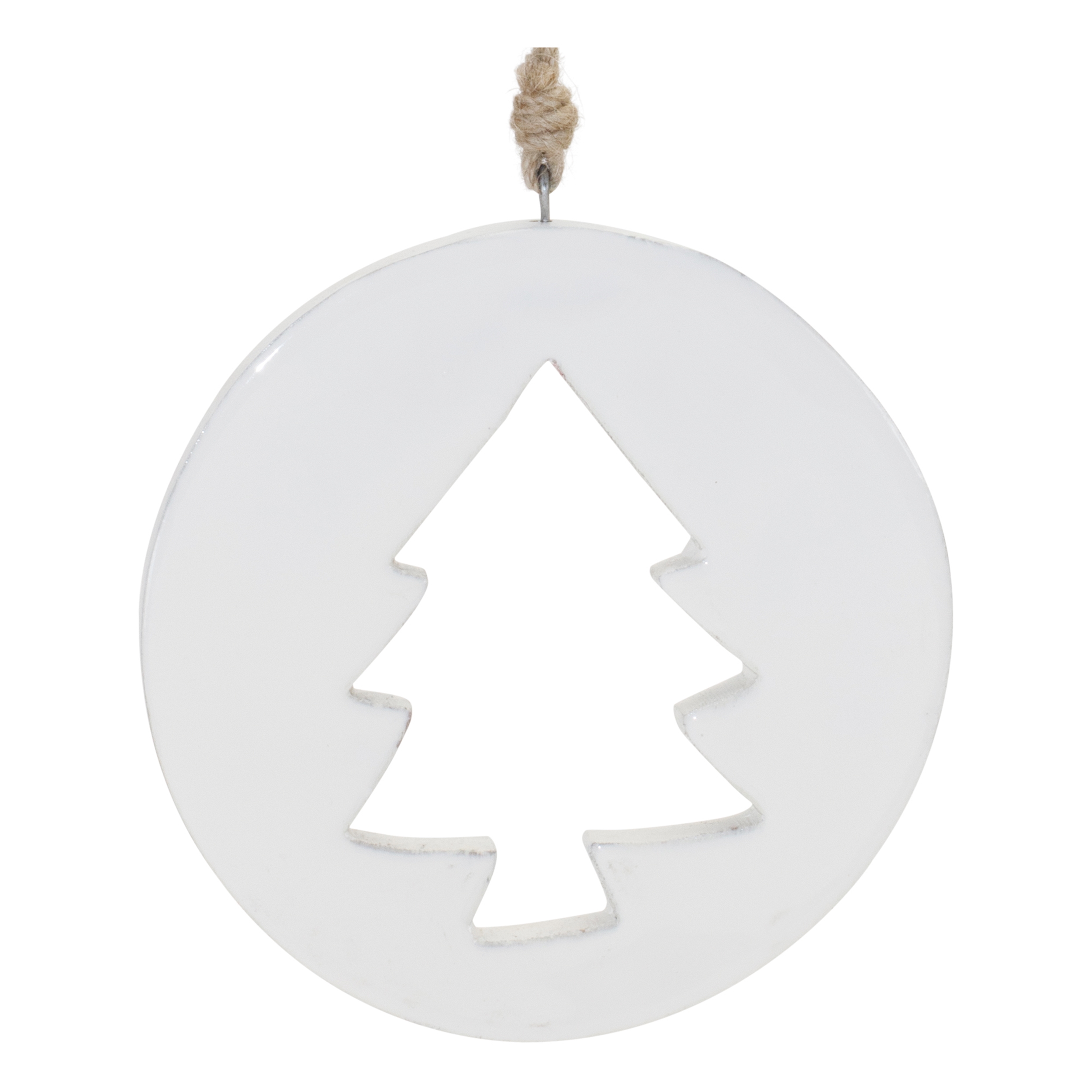 Bring a touch of rustic charm to your holiday decor with this set of White Wood Pine Tree Cut-Out Ornaments. Featuring a classic tree silhouette in a wintry white finish, these ornaments add a cozy woodland aesthetic to your Christmas tree. Crafted from quality solid wood with a natural jute string hanger, they are designed for lasting seasonal enjoyment. Perfect for decorating your home or gifting to a loved one, these ornaments will spread holiday cheer year after year. Sold in a set of twelve pieces with two assorted sizes to create a balanced display on your Christmas tree.