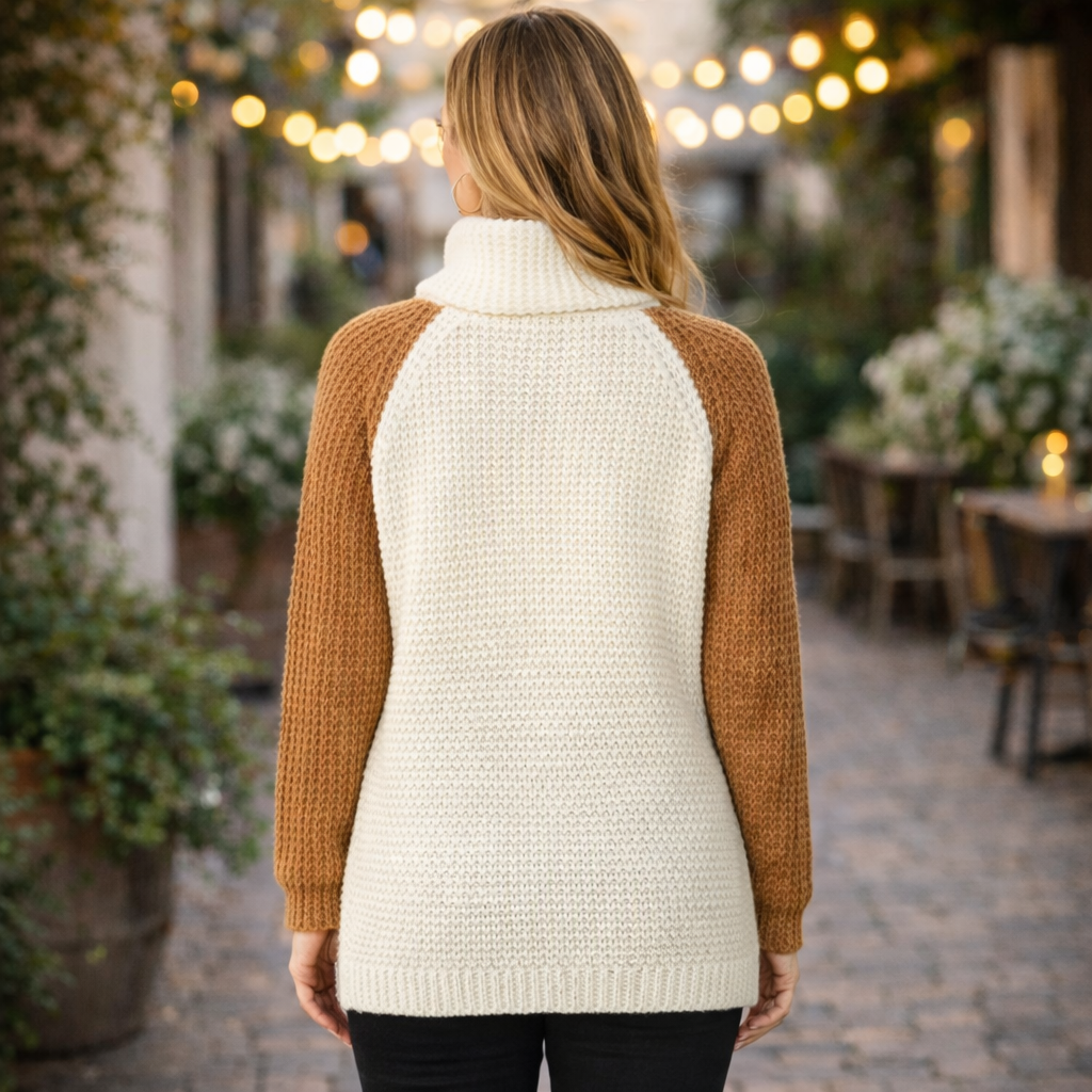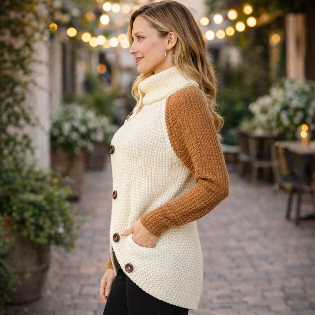 Wrap Style Sweater - Asymmetrical - Contrast Sleeve