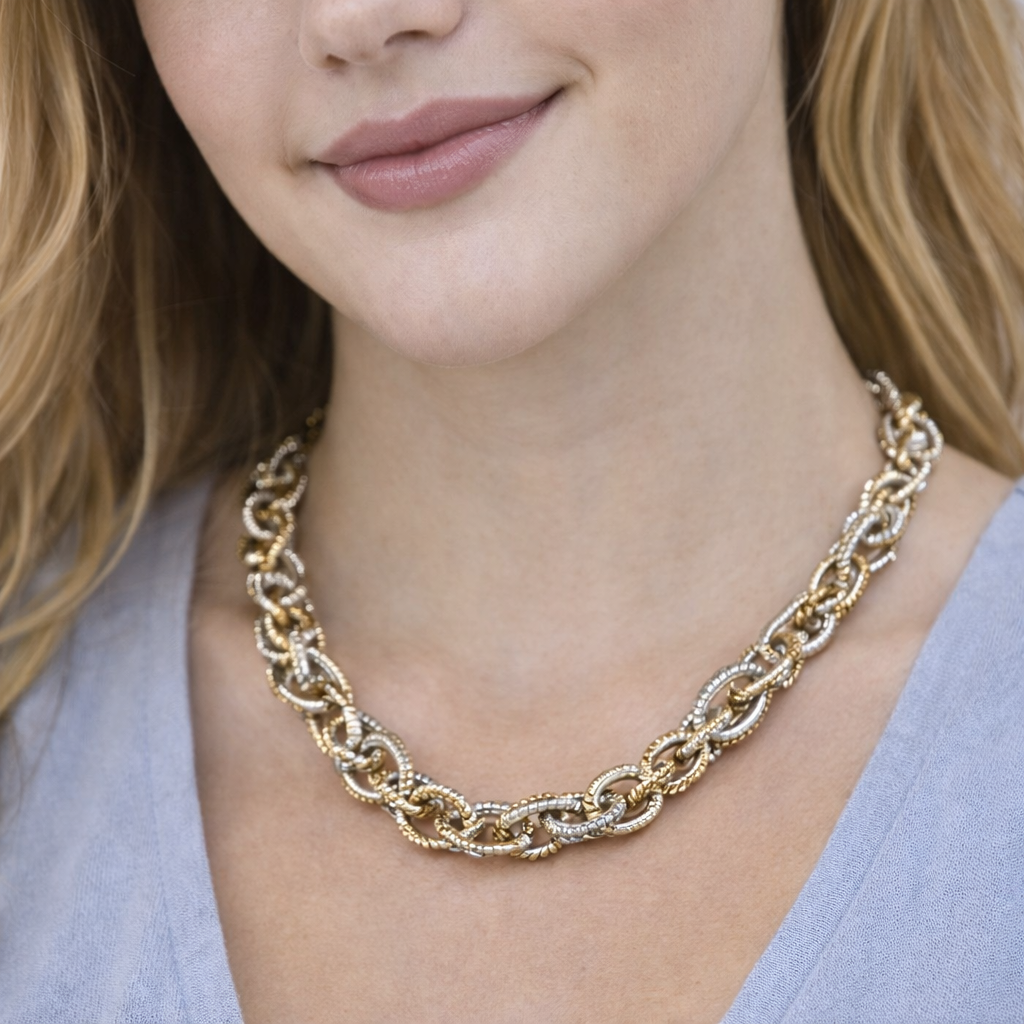 Two-Tone Gold & Silver Double Link Chain Necklace – Diamond Cut Sparkle