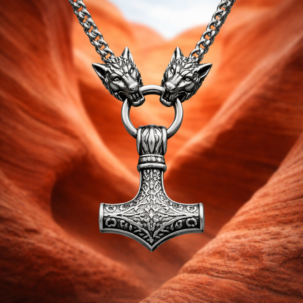 - Design: Thor’s Hammer (Mjolnir) with wolf head