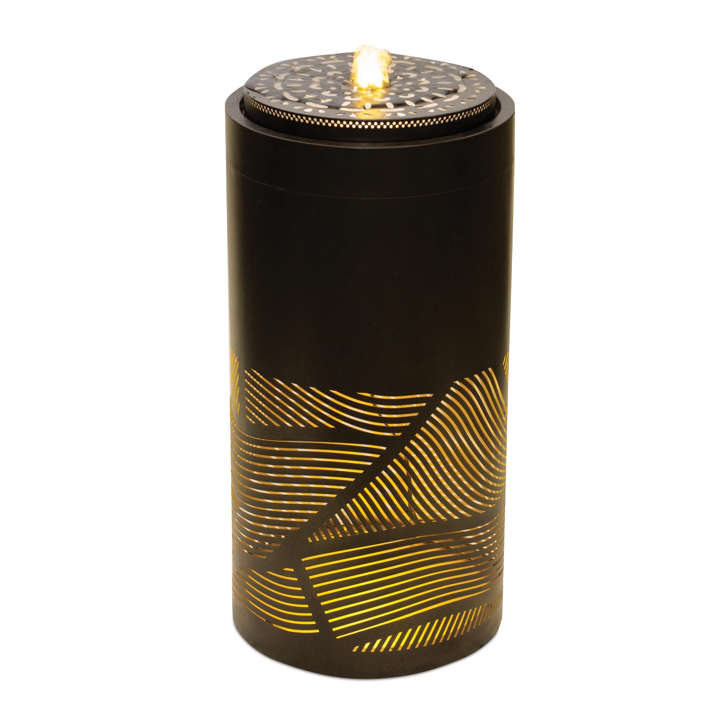 Add modern style and tranquil ambiance to your space with this Illuminated Leaf Pattern Fountain. The tall metal column features an elegant leaf-inspired cutout design that glows warmly from within while water gently bubbles from the top bowl. The combination of flowing water, contemporary design, and soft lighting creates a calming focal point that enhances patios, entryways, gardens, or indoor decor settings.