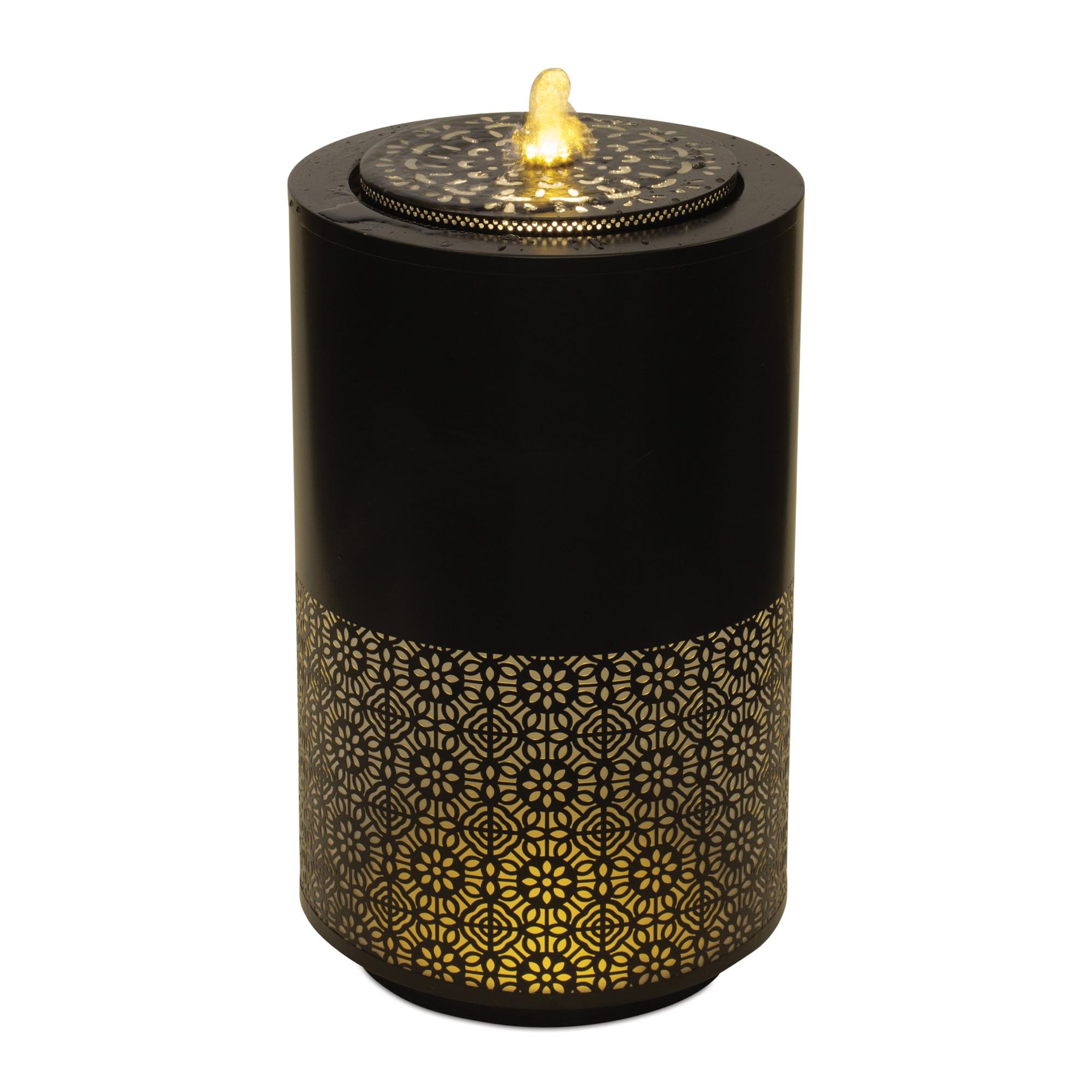 Bring soothing movement and warm ambient light to your indoor or outdoor space with this Illuminated Round Water Fountain. Crafted from durable metal with a decorative cutout pattern, the cylindrical design glows softly from within while water gently bubbles from the top surface. The combination of tranquil water flow and warm illumination creates a relaxing focal point perfect for patios, entryways, living spaces, or garden decor.