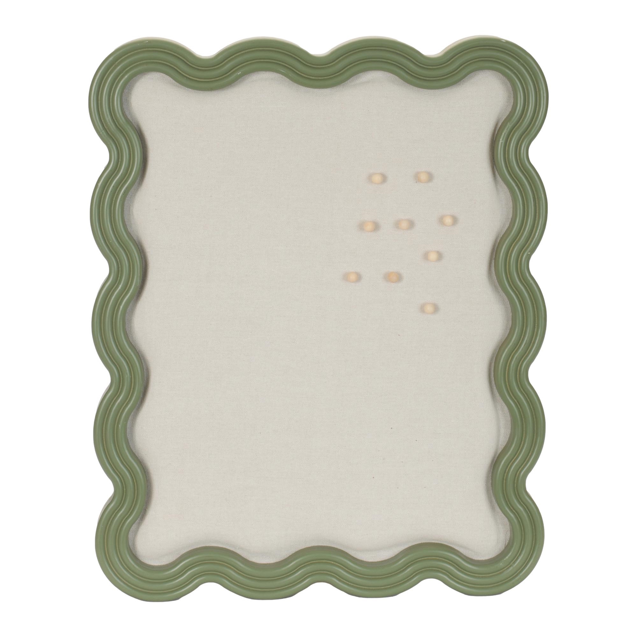Add a playful yet functional accent to your space with this scalloped pin board frame, featuring a softly curved design that brings subtle character to your walls. The fabric center offers a practical surface for displaying notes, photos, or reminders, while the decorative frame enhances its overall appeal. Perfect for offices, bedrooms, or entryways, this piece blends everyday utility with stylish design.