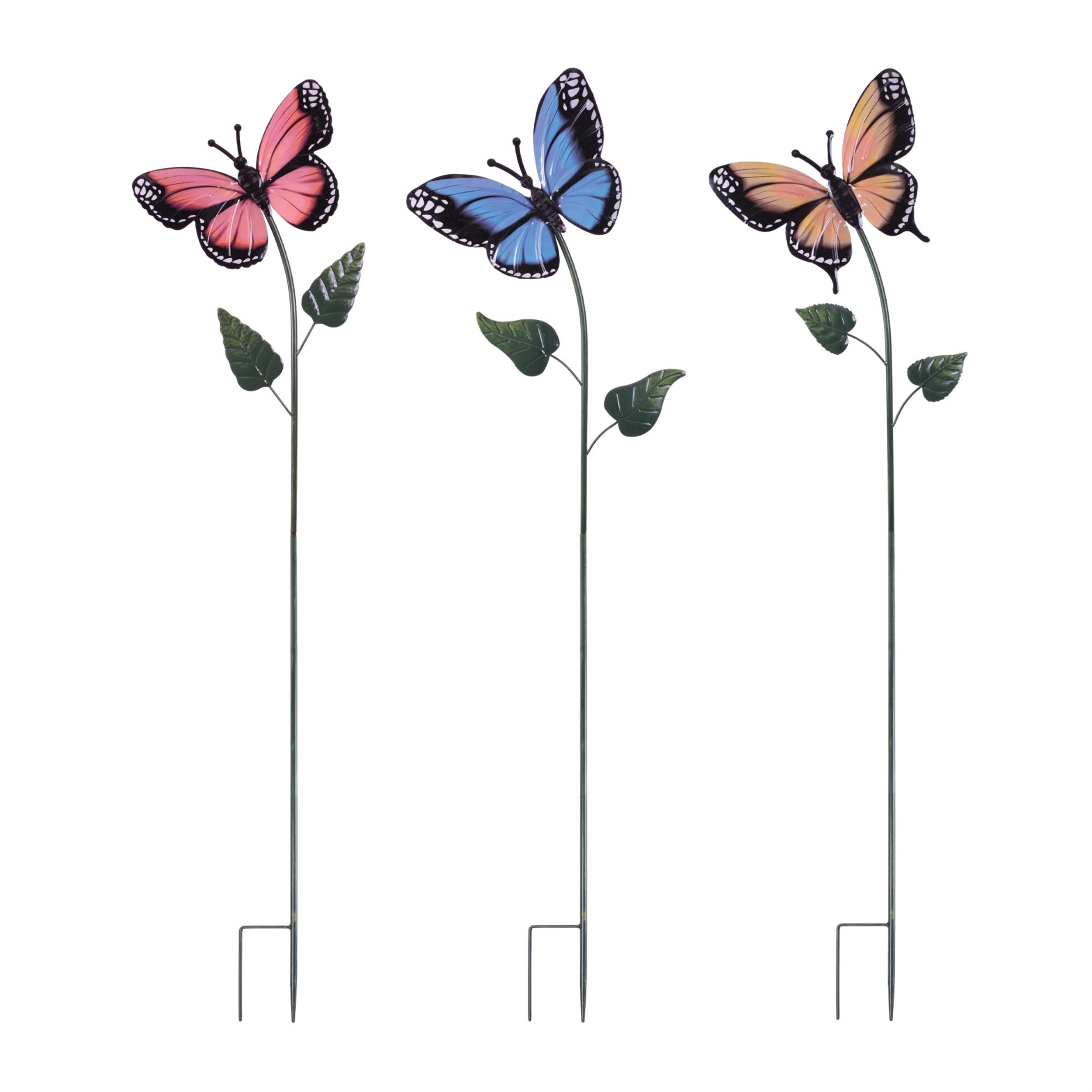 - Set of three tall iron garden stakes with detailed, dimensional butterfly accents