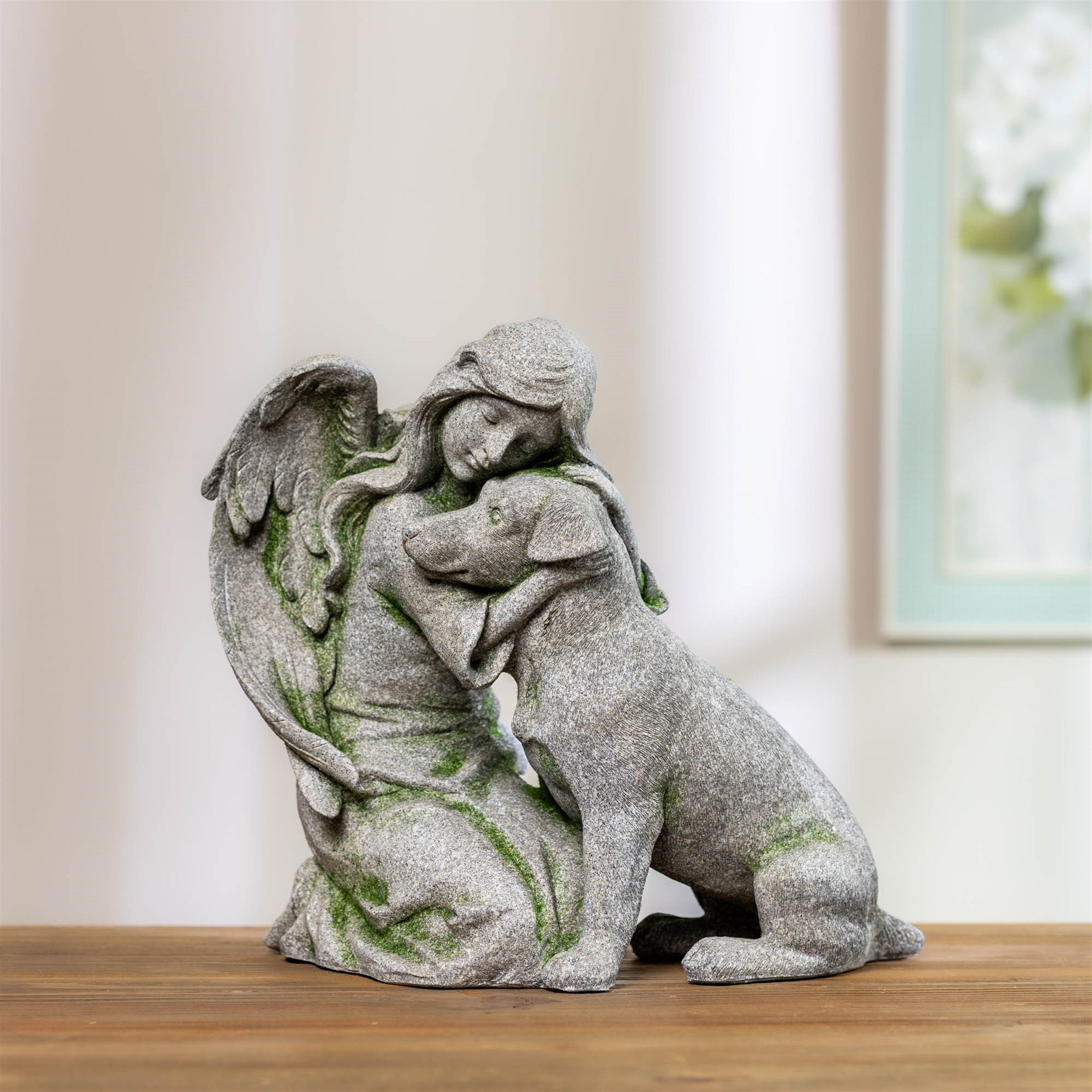Bring a sense of peace and heartfelt emotion to your decor with this angel and dog figure, featuring a tender moment of comfort and companionship. Designed with a stone-like finish and subtle green patina accents, the piece captures gentle details in both the angel s wings and the dog s form. The soft, sculpted texture and calming presence make it a meaningful accent for memorial spaces, gardens, or indoor displays, offering a touching tribute to love and loyalty.