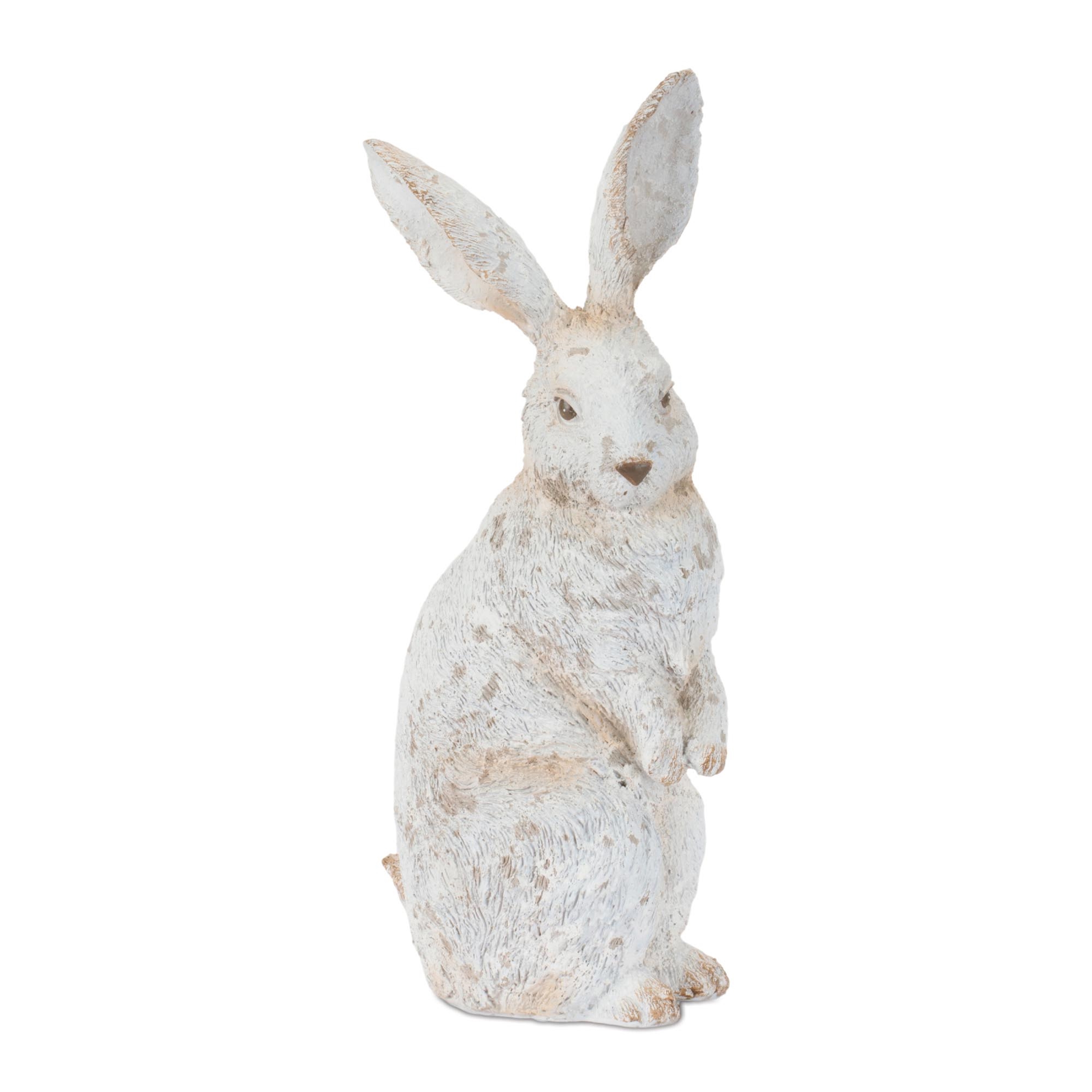 Add a charming and rustic accent to your decor with this rabbit figure, featuring a tall, sculpted silhouette with a softly distressed finish. The detailed fur texture and natural-looking stance give the piece a lifelike presence, while the neutral tones with subtle weathered accents create a warm, farmhouse-inspired appeal. Perfect for Easter decorating or year-round styling, this statement piece bring height and character to shelves, entry tables, or seasonal displays.