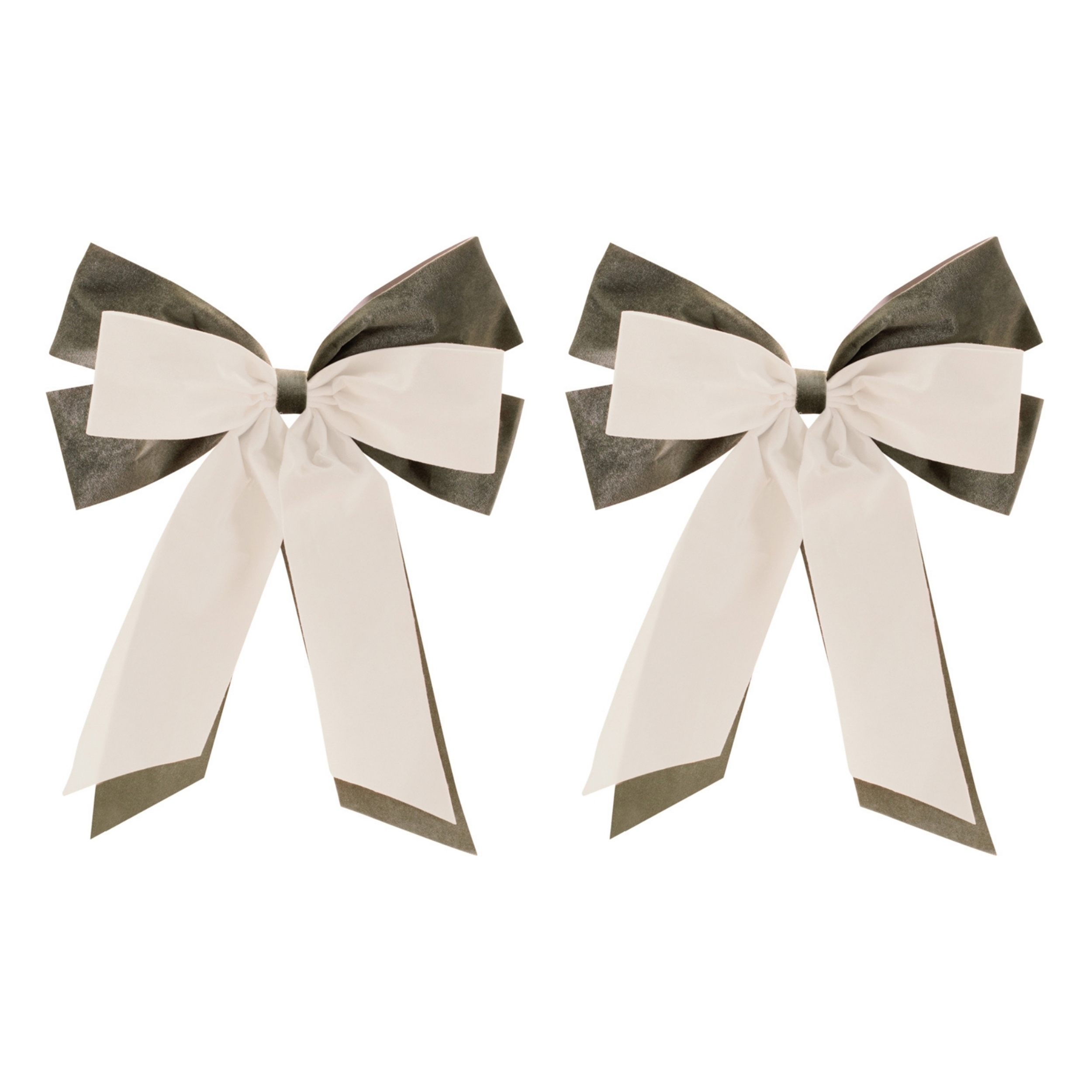 Classic, elegant, and full of holiday charm, this Bow Ornament Set is the perfect finishing touch for your Christmas d cor. Featuring layered sage green and white velvet fabric, these statement bows bring rich color and timeless style to trees, wreaths, garlands, and banisters. The soft texture and bold contrast create a traditional holiday look that pairs beautifully with farmhouse, vintage, or classic Christmas themes. Whether accenting your tree, decorating a front door wreath, or adding flair to wrapped gifts and mantel displays, these festive bows instantly elevate your seasonal styling.
