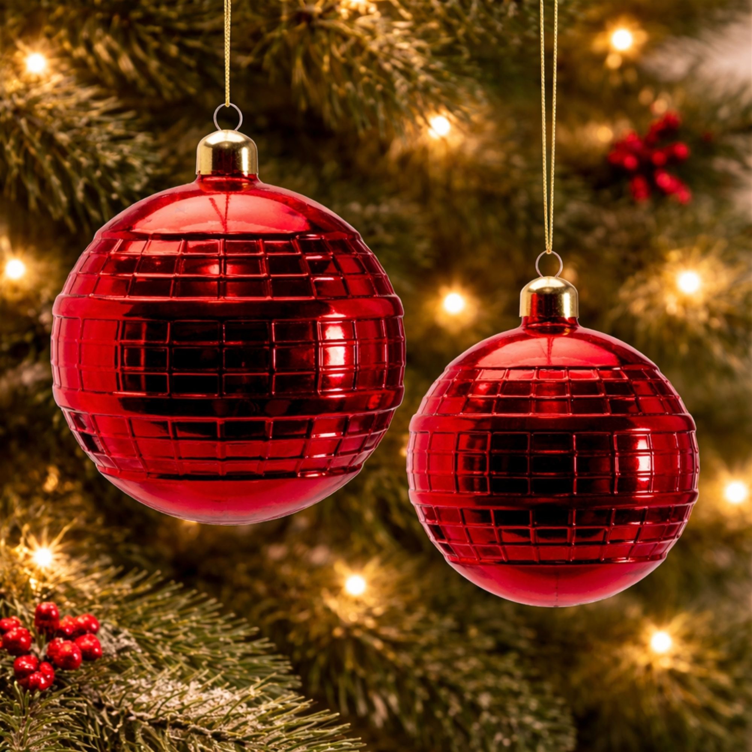 Add shimmering elegance to your holiday d cor with this Glass Ball Ornament Set. Featuring a mix of 4" and 5" round glass ornaments, this set brings depth, shine, and timeless style to Christmas trees, garlands, and wreaths. Their reflective surfaces catch twinkling lights beautifully, making them perfect for layering with other ornaments or creating a bold, festive display. These classic ornaments also make a charming addition to mantel displays, tabletop arrangements, or seasonal centerpieces.