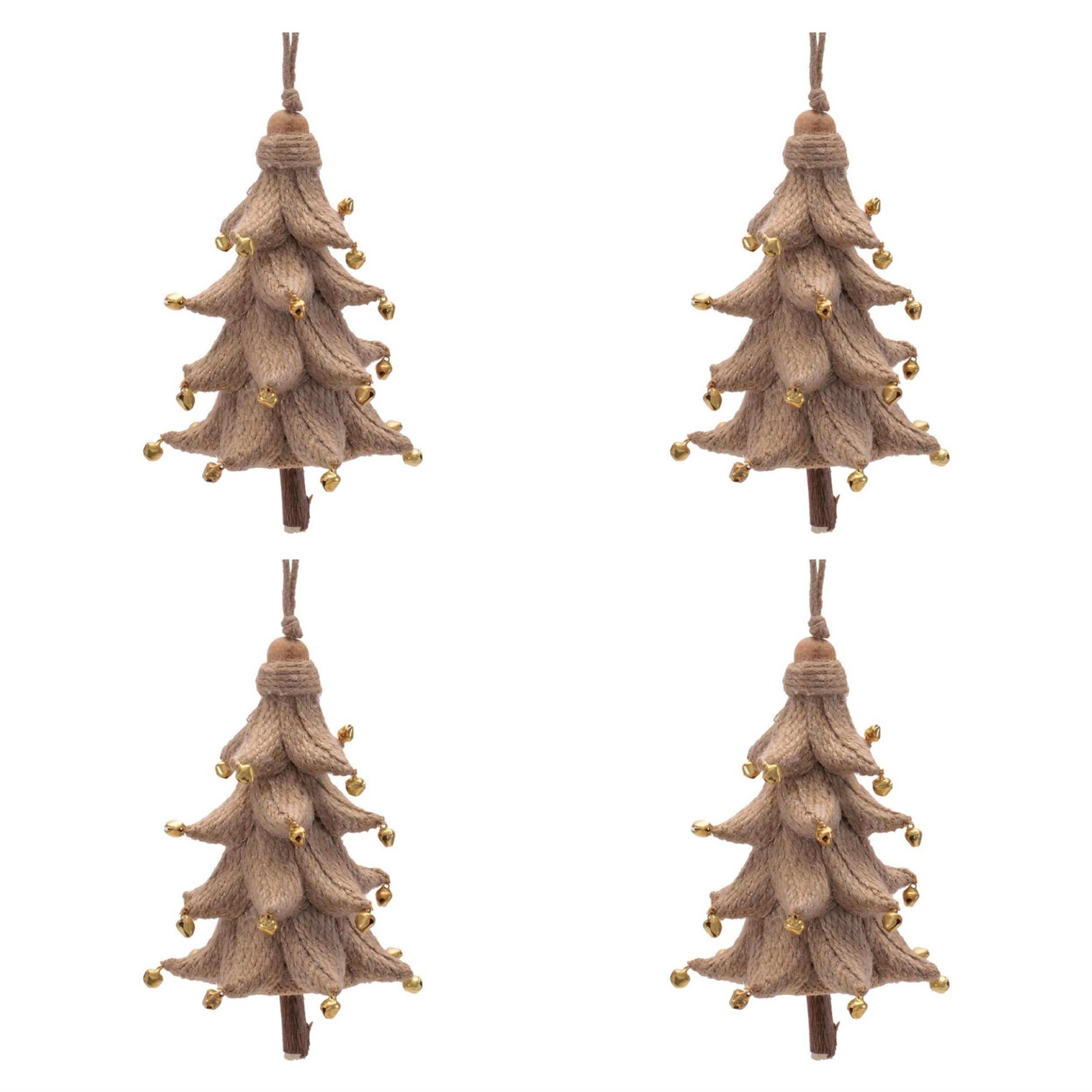 Rustic Tree Ornaments (Set of 4) 5.25" Plastic with Jute Hanger