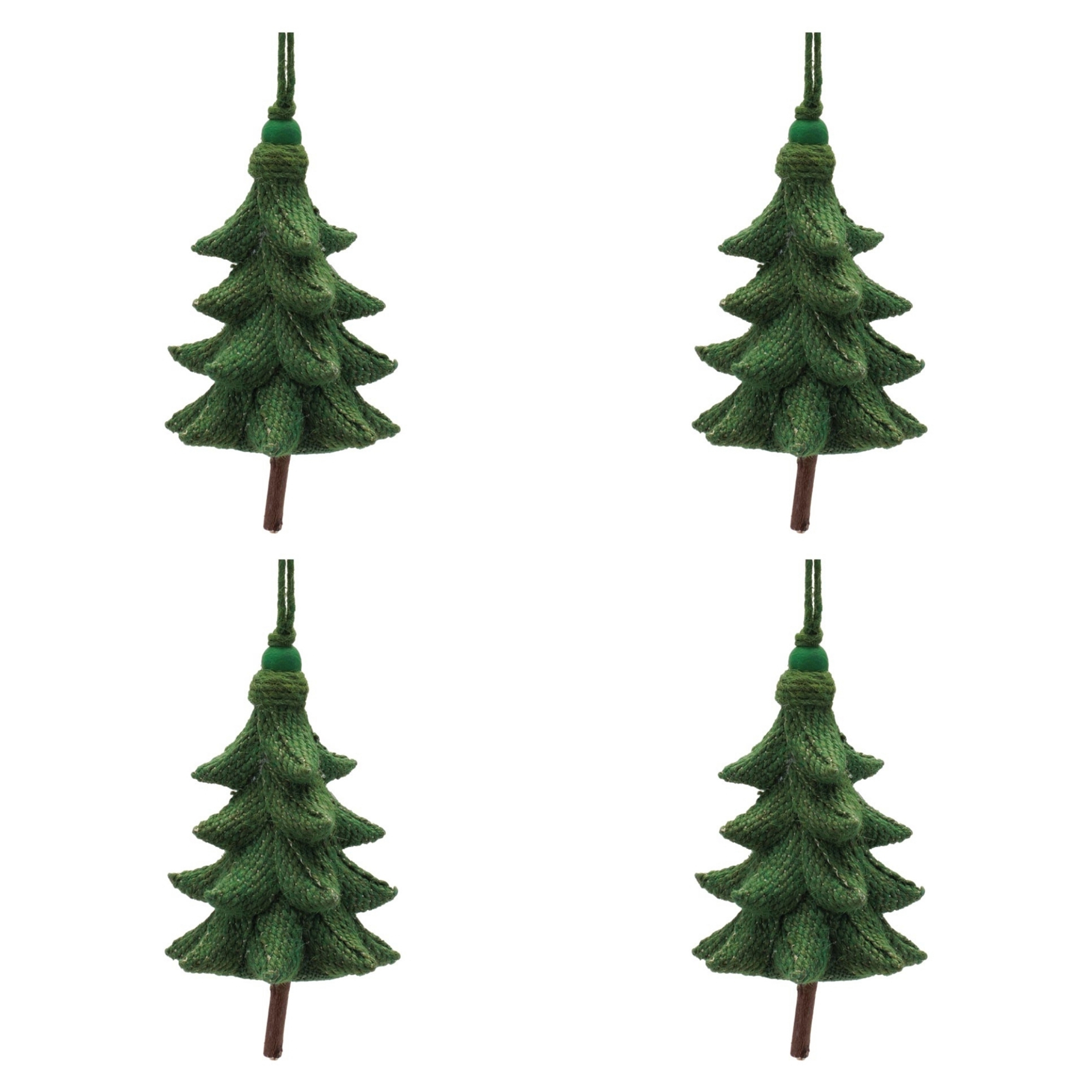 Rustic Tree Ornaments (Set of 4) 5.5" Plastic with Jute Hangers