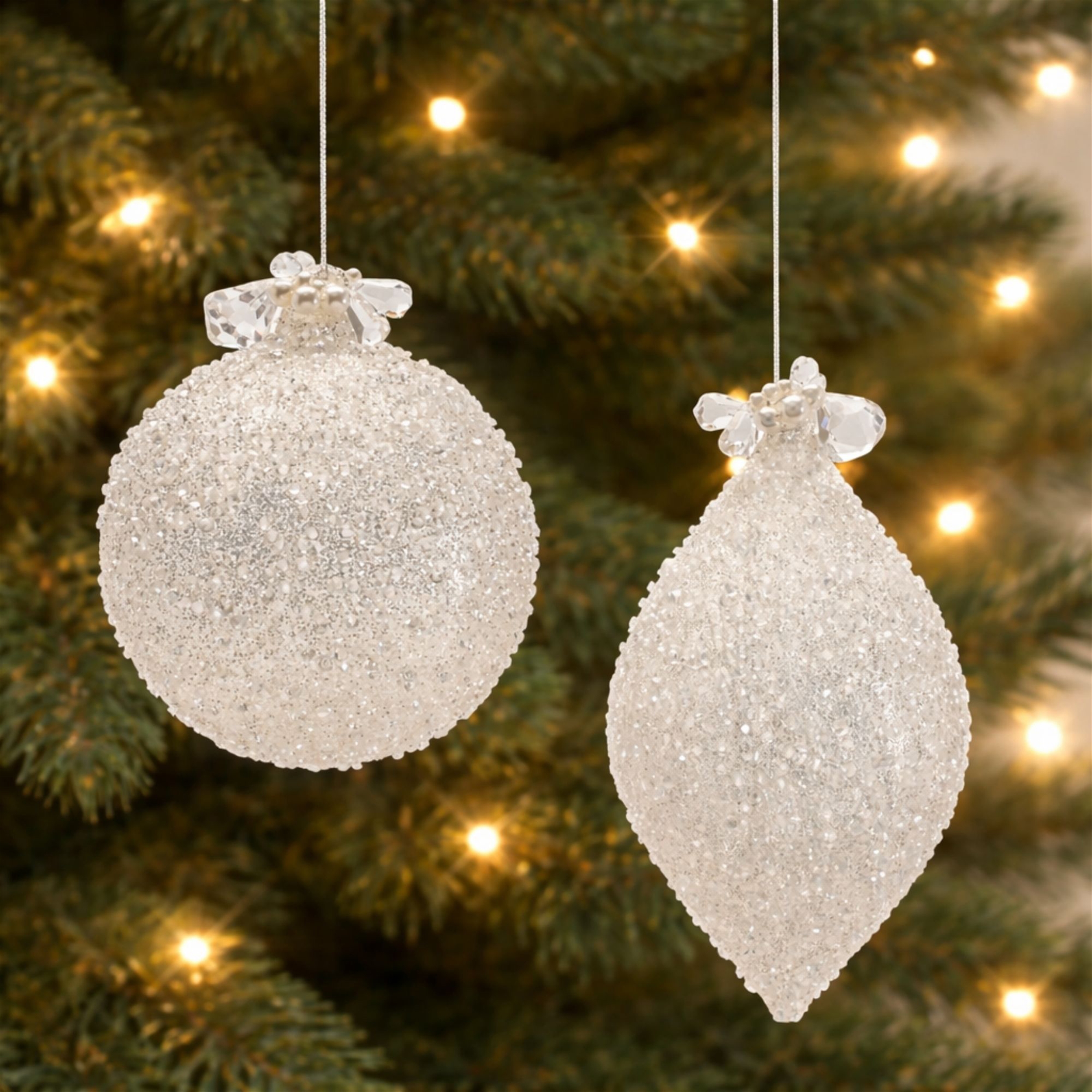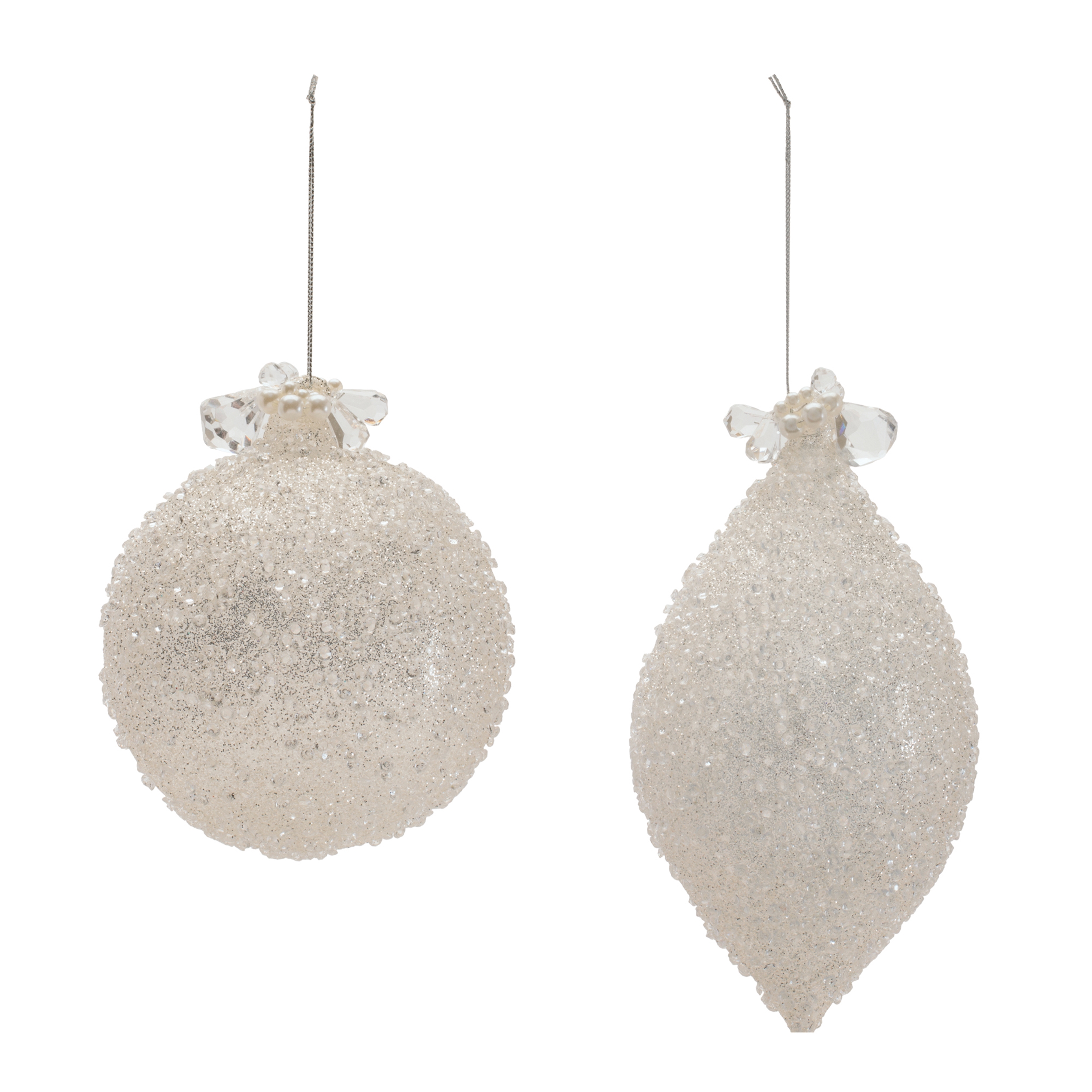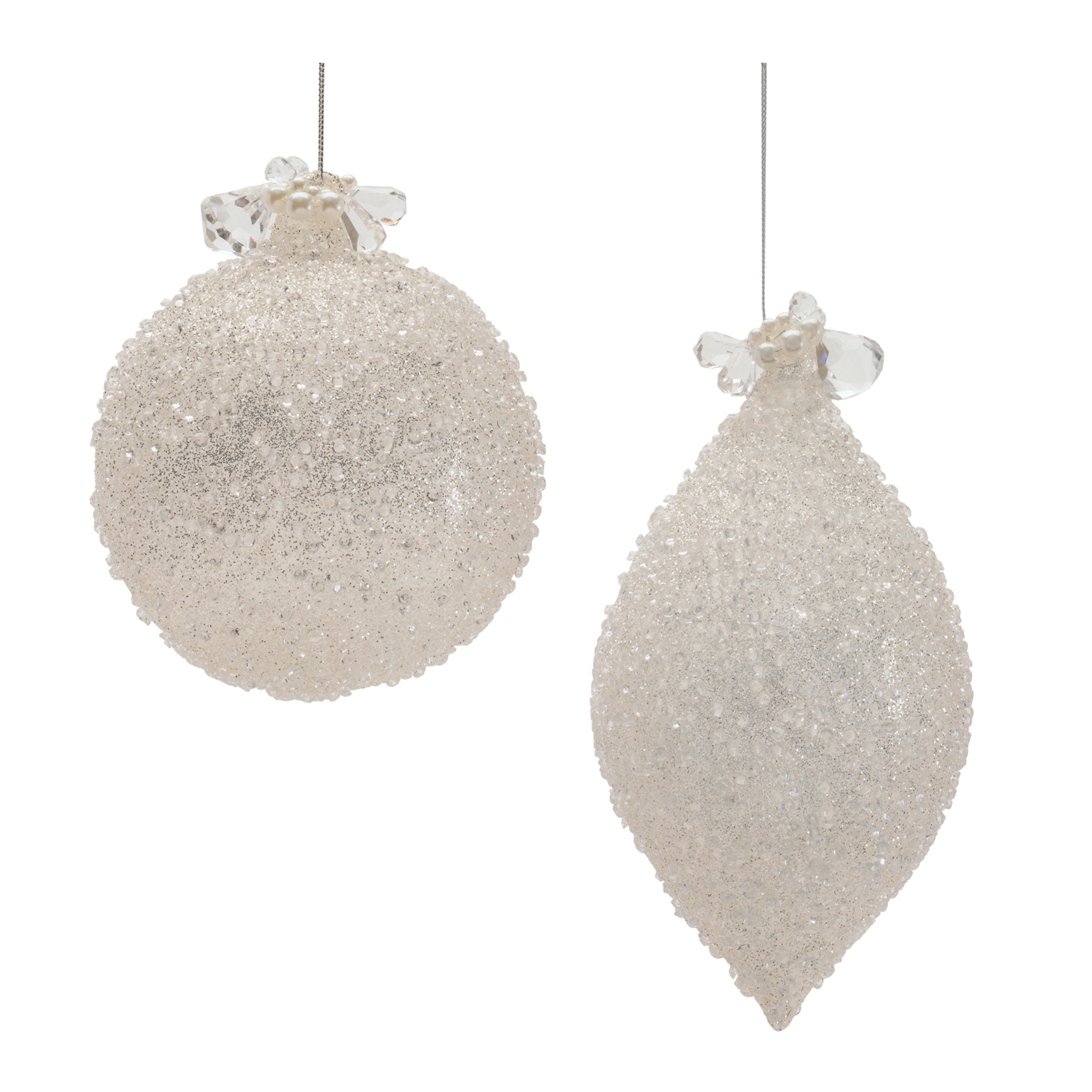 Bring elegance and festive charm to your holiday d cor with this set of Glass Drop Ornaments. Featuring a graceful elongated silhouette, these 5" x 7" ornaments add eye-catching dimension and sparkle to any Christmas tree. Crafted from glass, they reflect twinkling lights beautifully, creating a warm and inviting holiday ambiance.