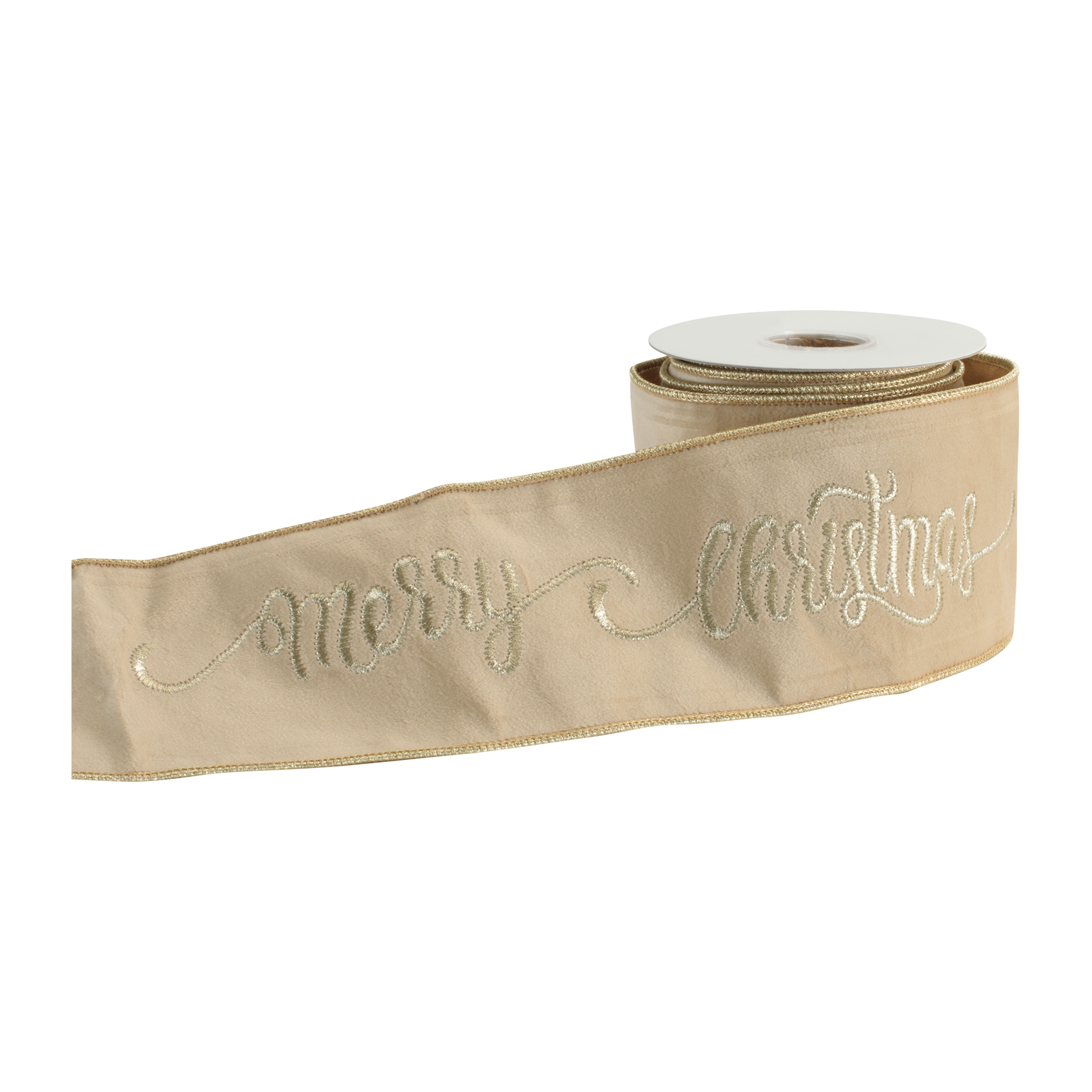 Merry Christmas Script Wired Ribbon 4" x 5 Yds.