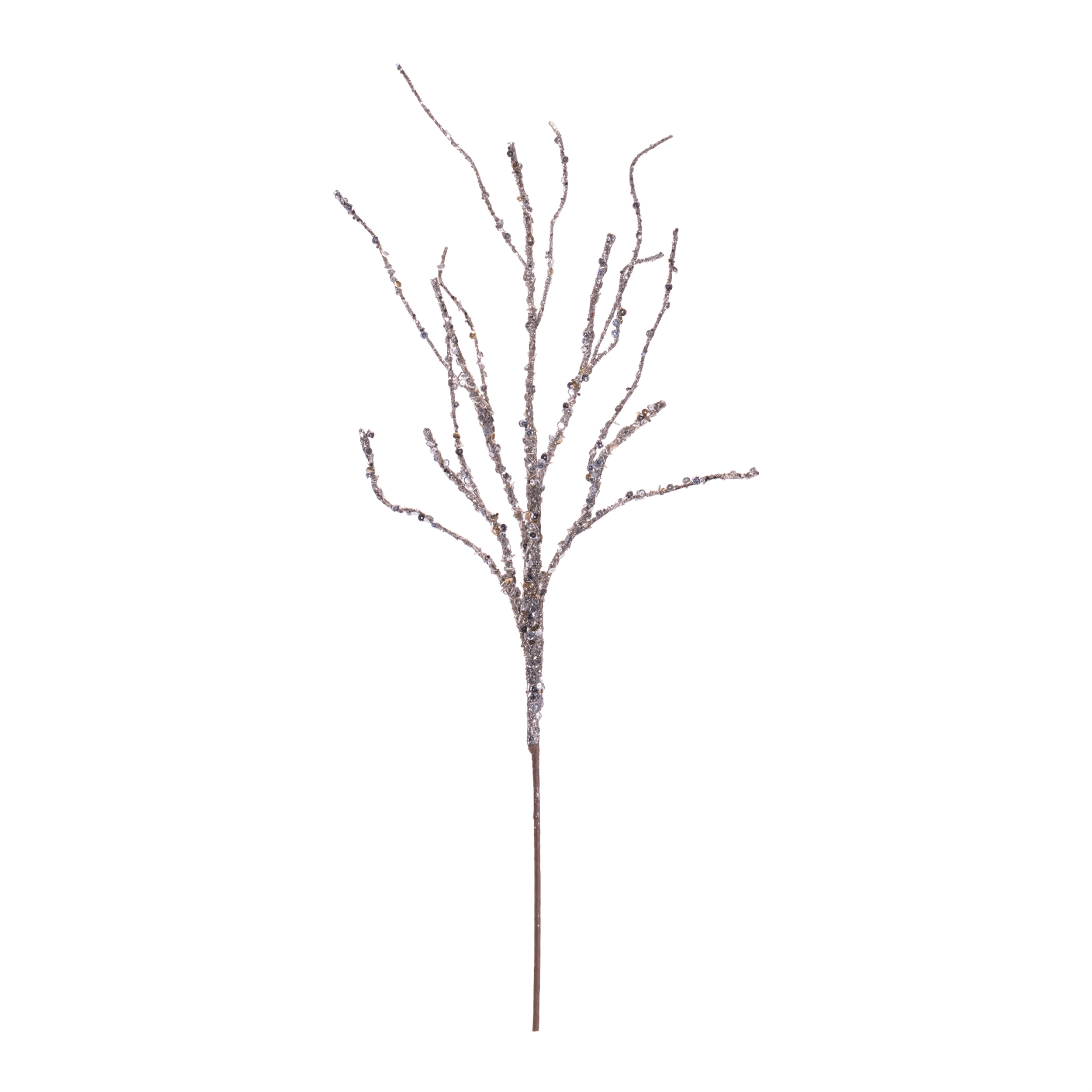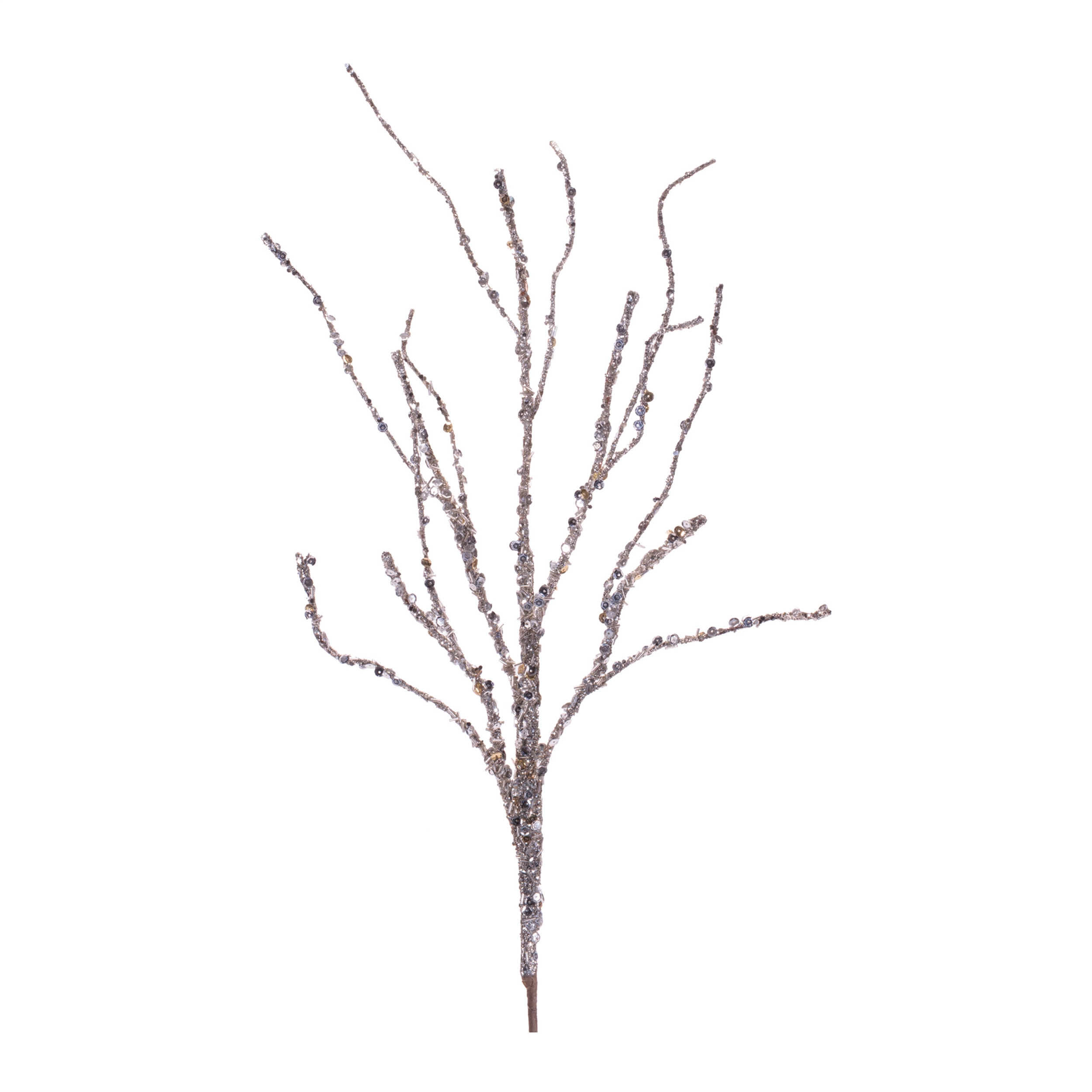- Set of four decorative glitter branches with natural-inspired silhouettes and radiant sparkle