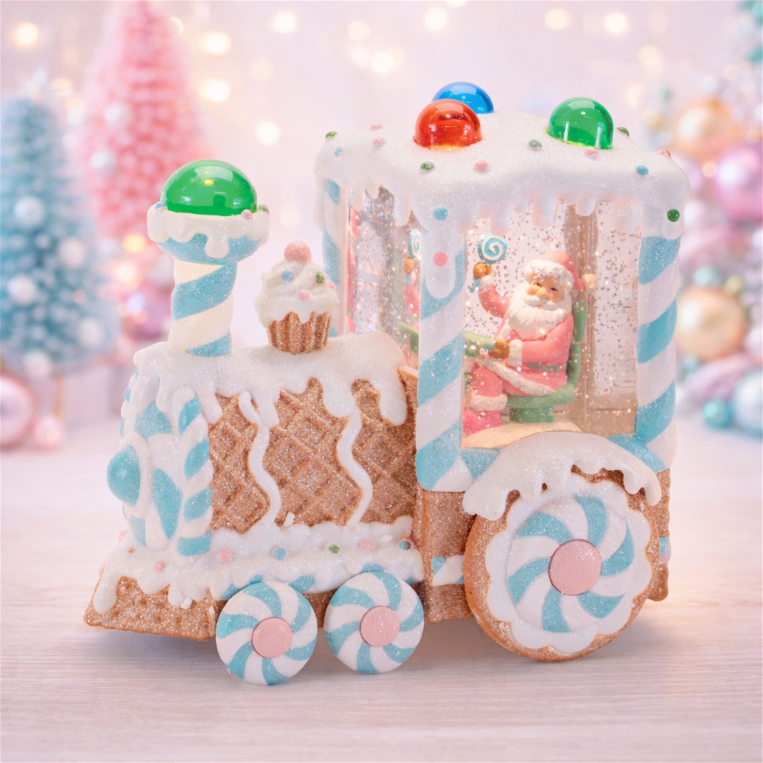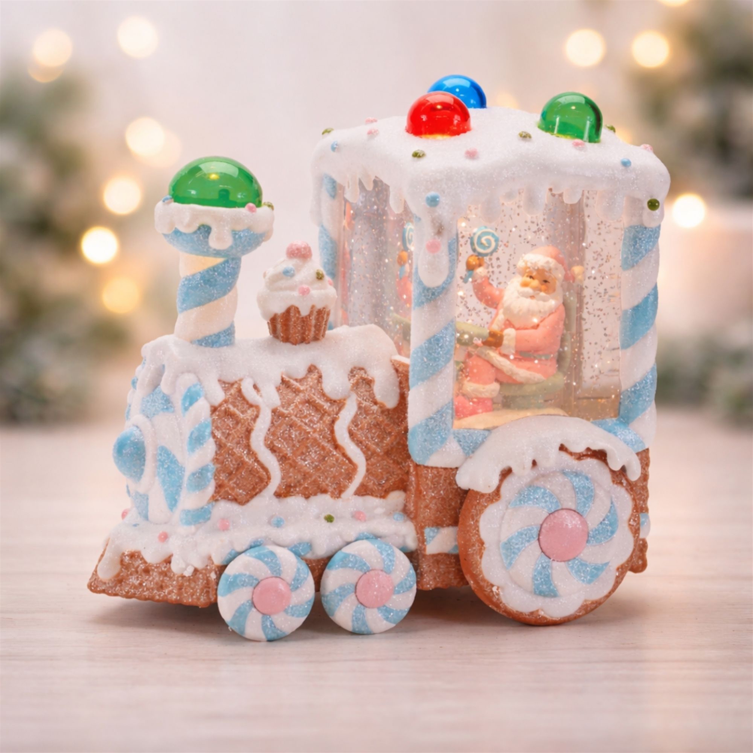 Sweeten your holiday d cor with this whimsical LED Santa & Gingerbread Bakery Snow Globe. Featuring Santa proudly standing behind a festive bakery sign alongside adorable gingerbread helpers, this charming scene sparkles with swirling glitter and soft LED light for a magical, animated effect. Designed with a cupcake-inspired base topped with snowy frosting details, this lighted snow globe blends classic Christmas charm with playful bakery-themed style. Perfect for kitchen counters, dessert tables, mantels, tiered trays, or holiday party displays, this battery-operated and USB-compatible snow globe adds a cozy glow and cheerful movement to any space. Whether you re decorating a candy-themed Christmas tree, creating a gingerbread village display, or gifting to a holiday baking enthusiast, this illuminated snow globe delivers festive sweetness all season long.