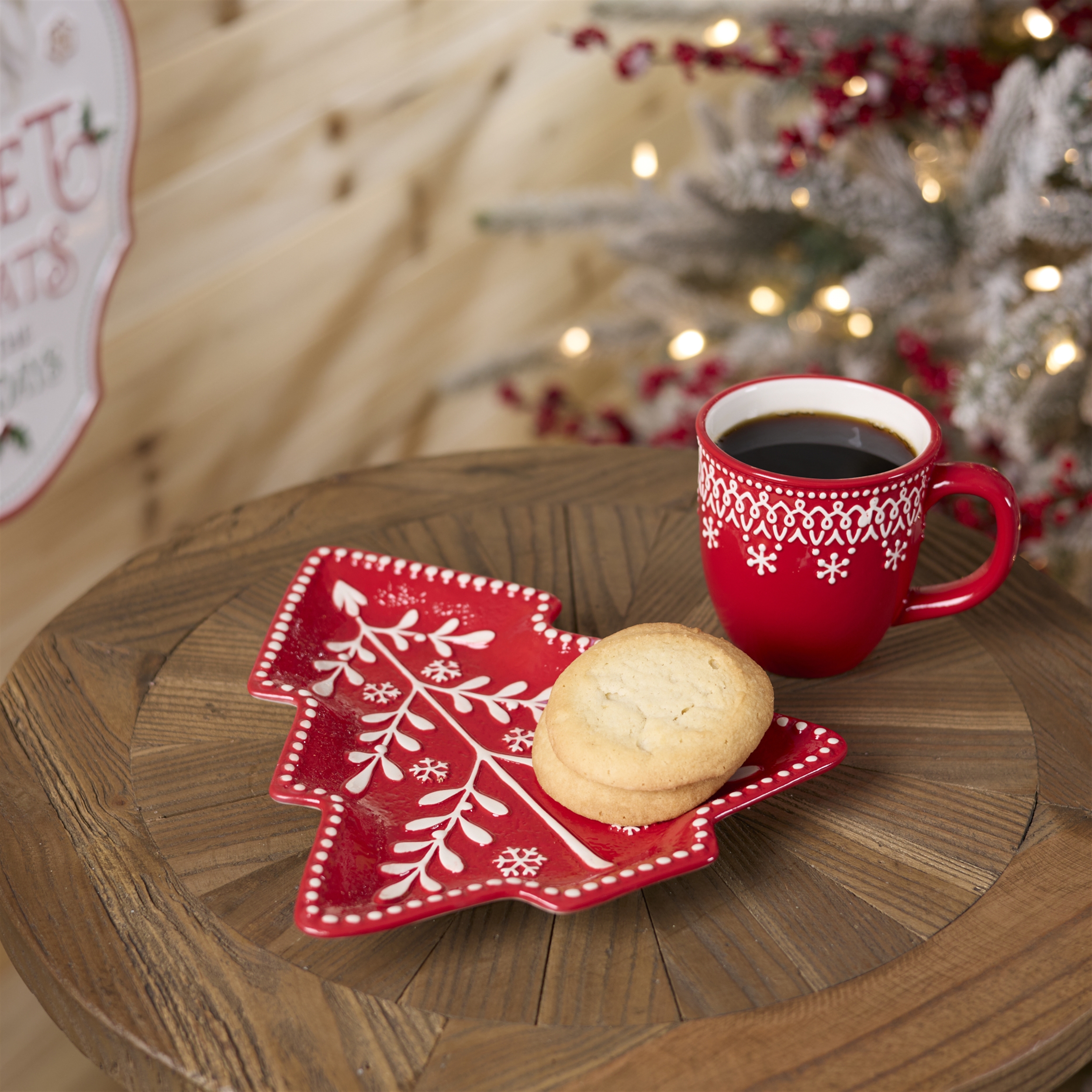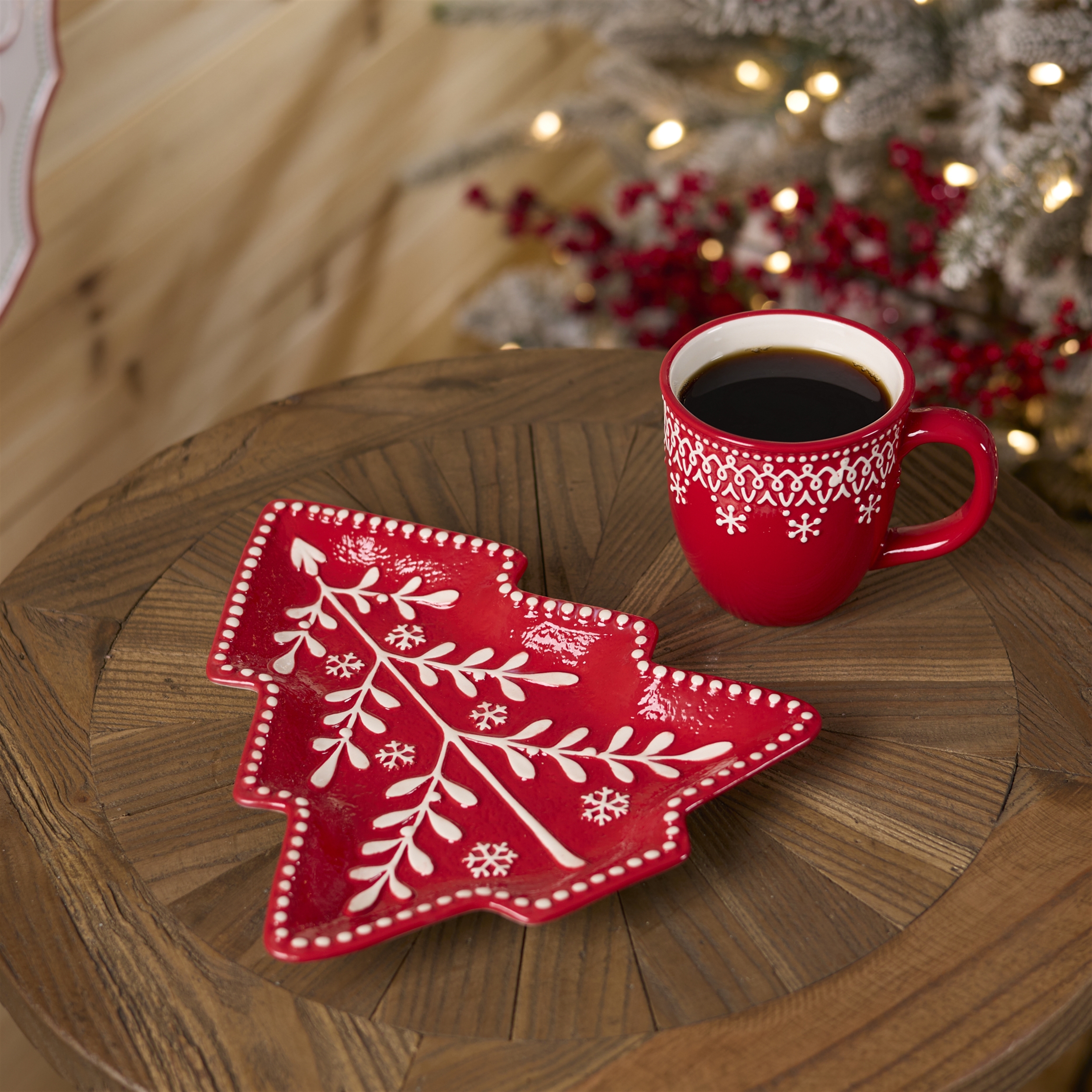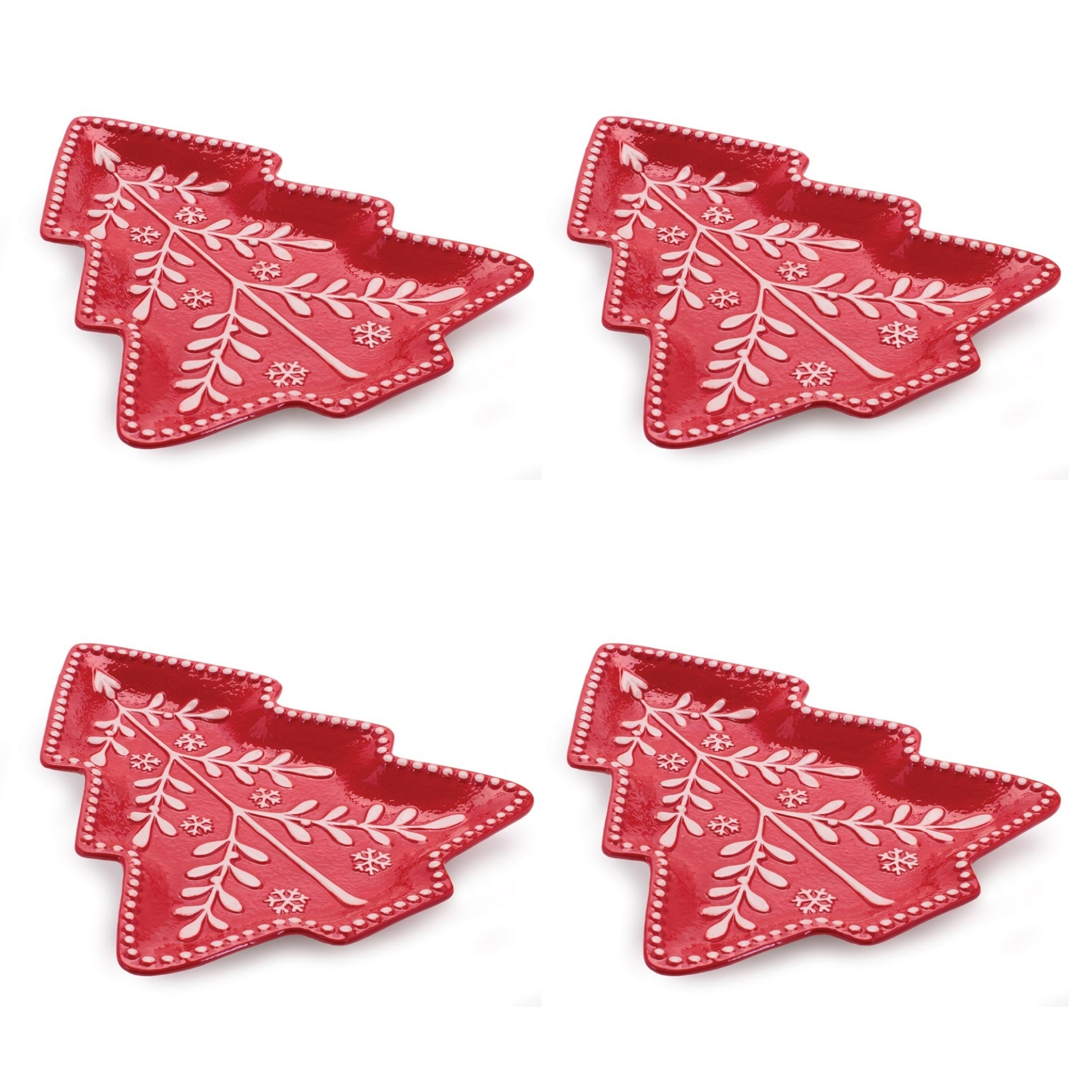 Bring sweet holiday charm to your table with this Red Tree Ceramic Plate Set. Designed in the shape of a cozy pine tree and finished in a festive red glaze with raised icing-style details, these plates add a playful touch to any Christmas gathering. Perfect for serving cookies, candies, appetizers, or holiday desserts, they re ideal for cookie exchanges, classroom parties, and family celebrations. The wintry design instantly creates a warm, whimsical atmosphere, making them just as delightful for display as they are for entertaining. Whether you re hosting a holiday party or setting out treats for guests, these plates make every occasion feel extra merry.