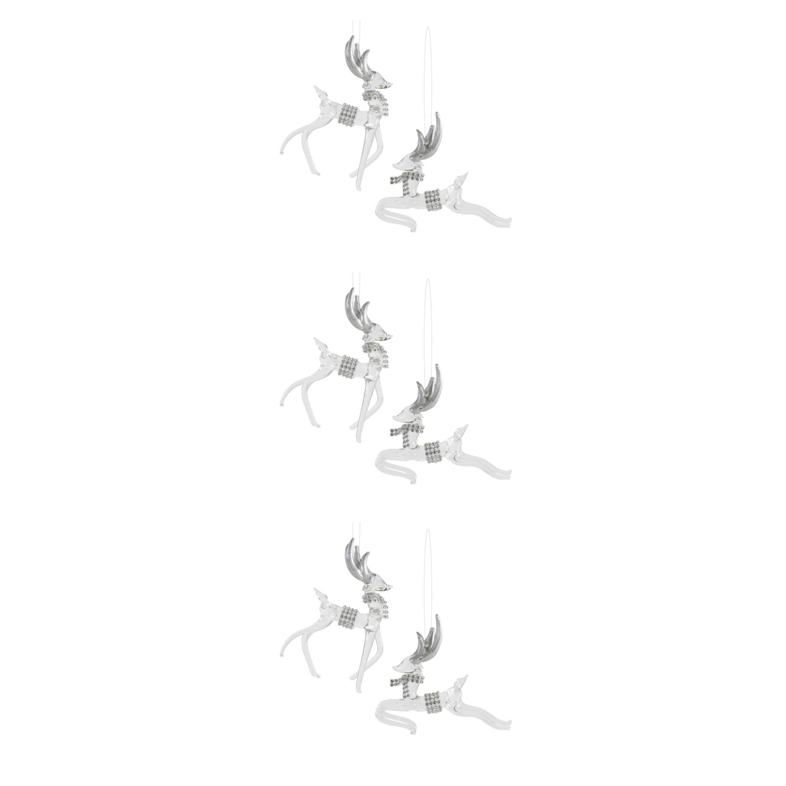 Celebrate the beauty of the season with this set of 6 Deer Ornaments. Each glass deer is delicately crafted to capture the elegance and charm of these graceful woodland creatures. Perfect for adding a rustic yet festive touch to your Christmas tree, wreaths, or holiday displays, these ornaments also make thoughtful gifts for nature lovers and holiday d cor enthusiasts. Bring a touch of woodland magic into your home this holiday season.