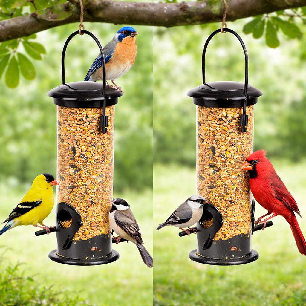 Small Tube Bird Feeder2-Port Hanging Outdoor Seed Feeder • Patio & Backyard Friendly