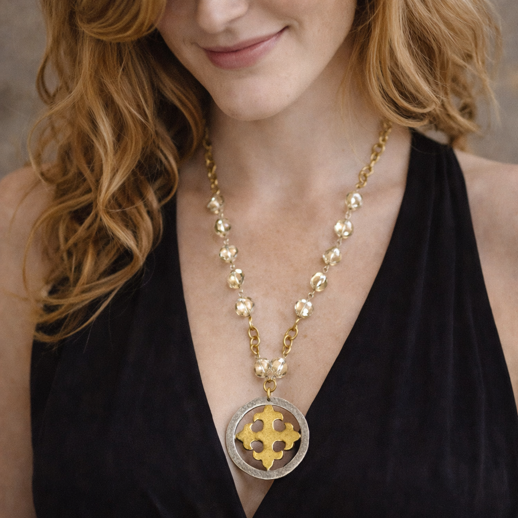 Julio Designs Brasilia Necklace — Maltese Cross & Circle Pendant