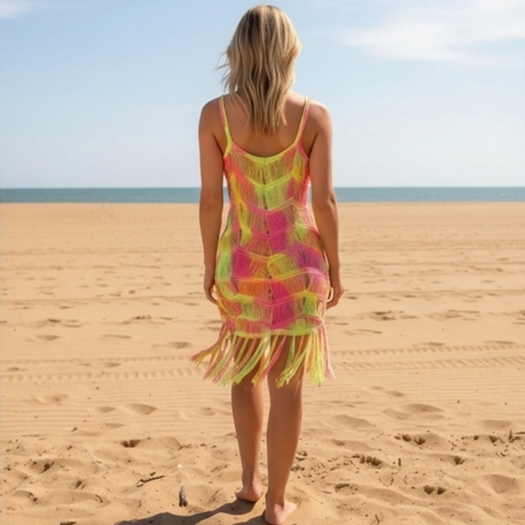 Crochet Beach Cover Up Colorful BOHO Swim Dress Bikini Cover Up Swim Shirt Mesh
