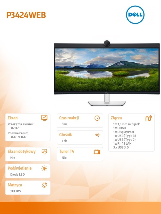 DELL DELL-P3424WEB DELL 34 CURVED VID CONF MON P3424WEB