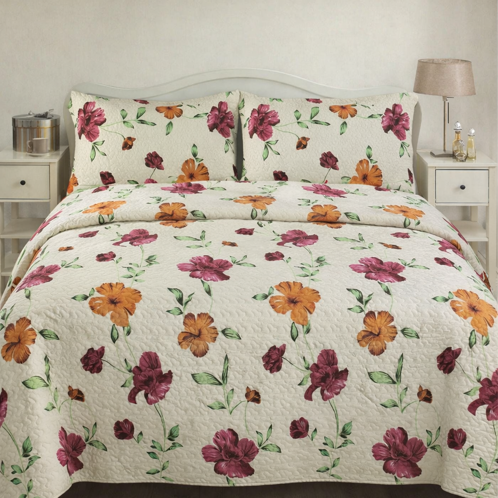 Floral Quilted Bedspread Set