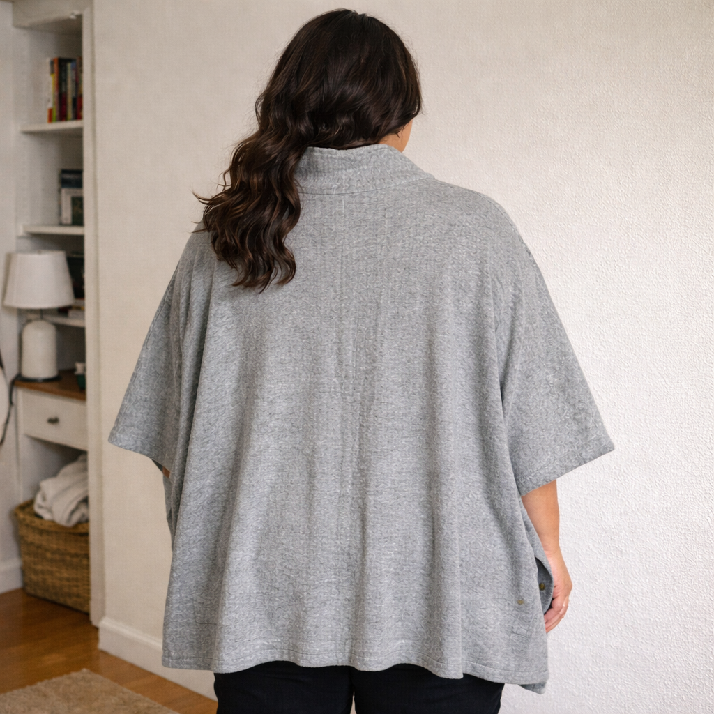 Cozy, polished layering piece from Foxcroft in a versatile Charcoal Heather. This poncho-style sweater has a relaxed drape with a structured collar and a snap-front closure—easy to throw on over tees, blouses, or dresses for instant style.