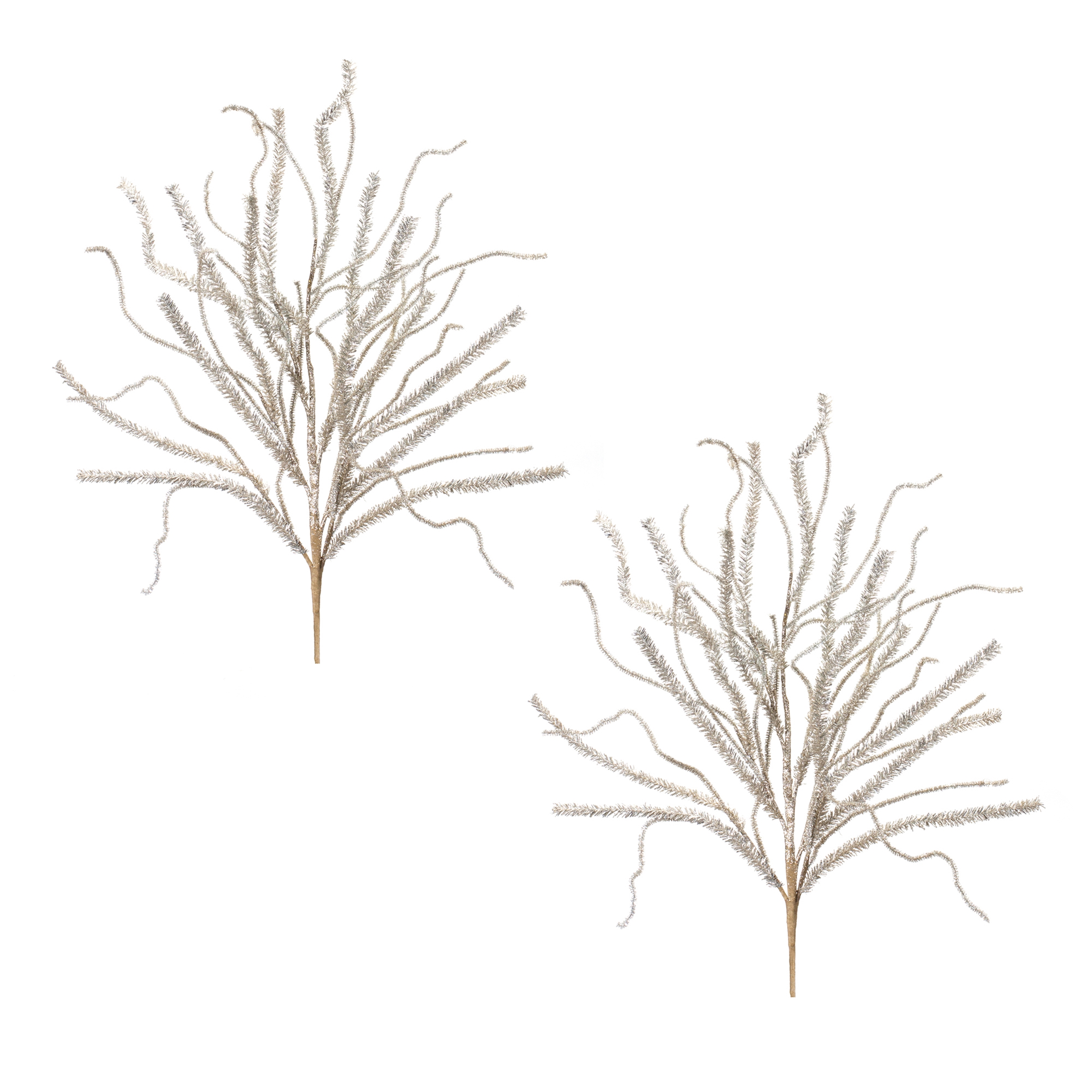 Enhance your holiday decor with the elegant Glittered Pine Tinsel Branch. These stunning artificial branches feature wintry silver tones and shimmering tinsel accents, making them the perfect addition to your Christmas tree, holiday porch pot, or festive tabletop arrangement. Crafted from high-quality plastic, these decorative sprays are designed to last for seasons to come. Whether used alone or as part of a larger holiday display, these branches add a touch of winter magic to any space. Sold in a set of two matching pieces to create a balanced display in your home.
