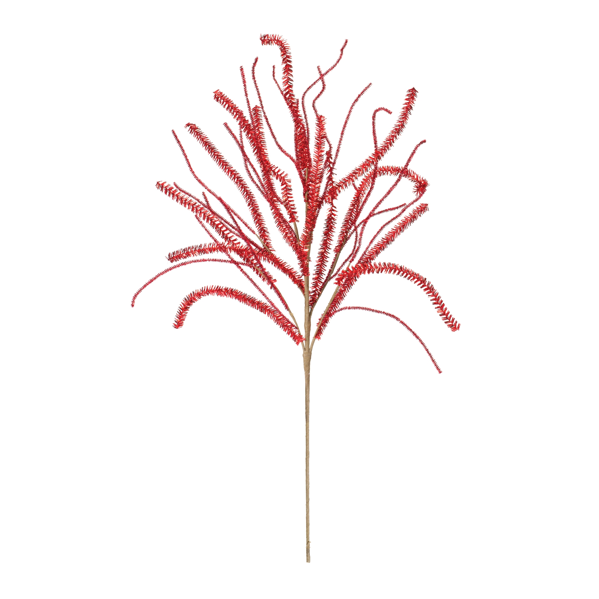 Bring a festive touch to your holiday decor with this Glittered Pine Tinsel Branch. Designed to add shimmer and elegance, these red Christmas stems are perfect for enhancing your Christmas tree, seasonal wreaths, table centerpieces, or holiday porch pots. The delicate tinsel accents and rich red tones create a sparkling, eye-catching display. Made from high-quality plastic, these durable branches are designed to last for seasons to come. Whether used alone or mixed with other holiday greenery, these Christmas sprays bring the perfect amount of holiday cheer to any setting. Sold in a set of two matching pieces to create a balanced display in your home.