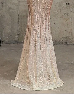 Make a memorable entrance in this stunning gold sequin floor-length gown. Designed to hug the waist and hips and gently flare toward the hem, it creates a graceful, flattering silhouette that feels glamorous without being overdone.