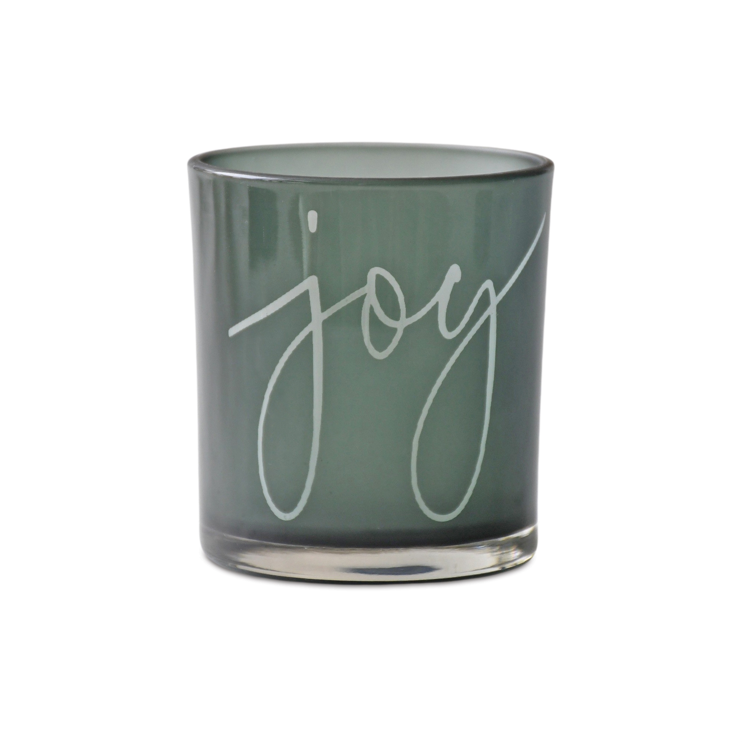 Illuminate your home this holiday season with this stunning set of Green Glass Candle Holders. Featuring three pieces, this set is a great fit for your modern or transitional style of holiday decor. The traditional "Joy" sentiment paired with the trendy sage green tone is the perfect combination to create a memorable display. The quality glass composition is sure to endure for seasons to come. Illuminate the set by adding a real wax or LED candle to each holder. Candles sold separately, this set best fits a 2" votive or tea light candle.