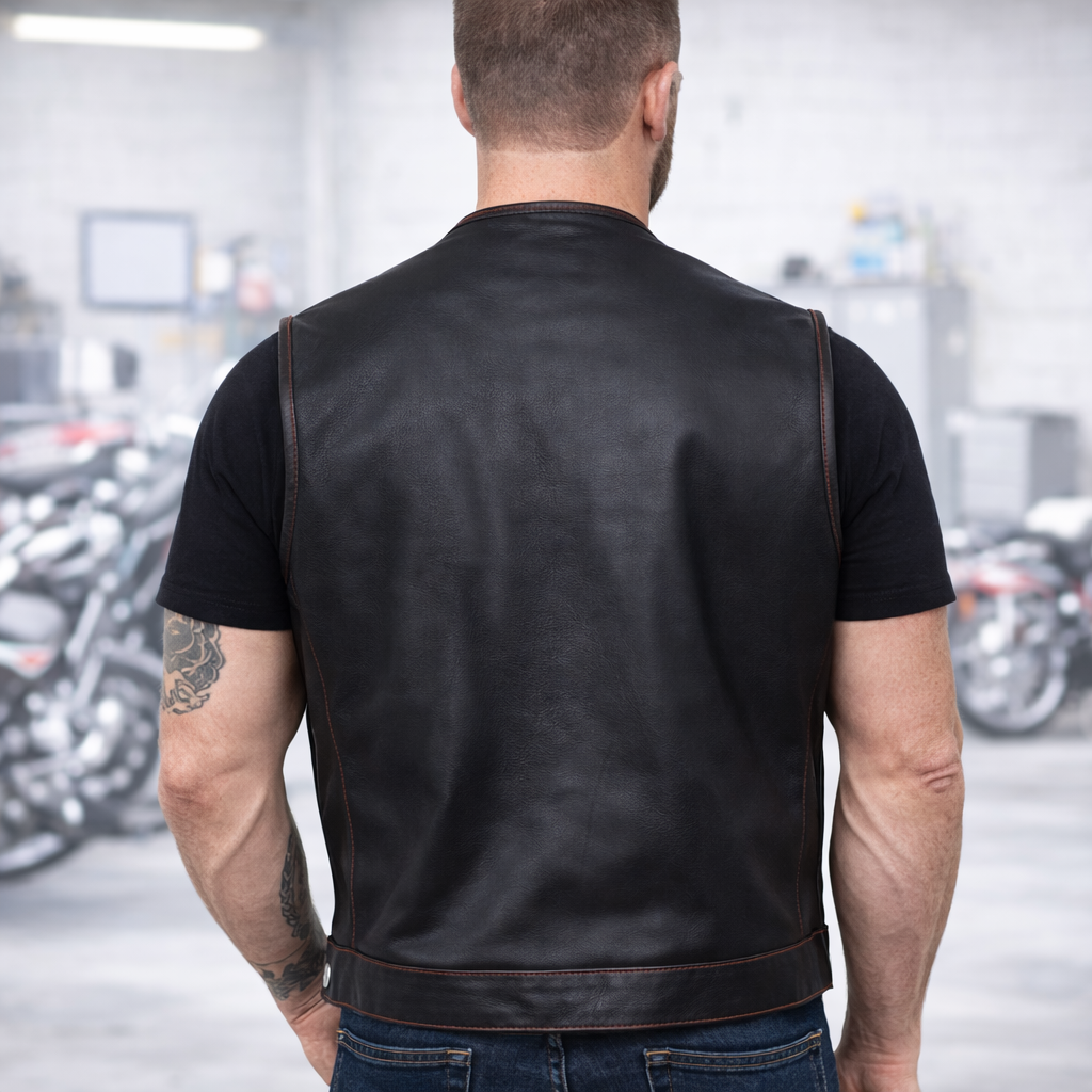 Built for the road and designed for the brotherhood, this High Mileage leather club vest is crafted from ultra-soft, thick premium cowhide known for durability, strength, and long-term wear. The clean one-panel back makes it ideal for club patches, embroidery, or custom personalization.