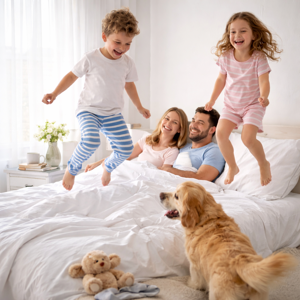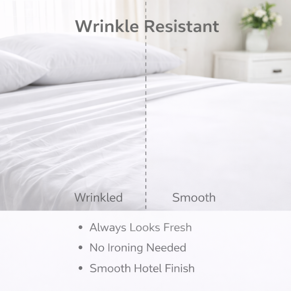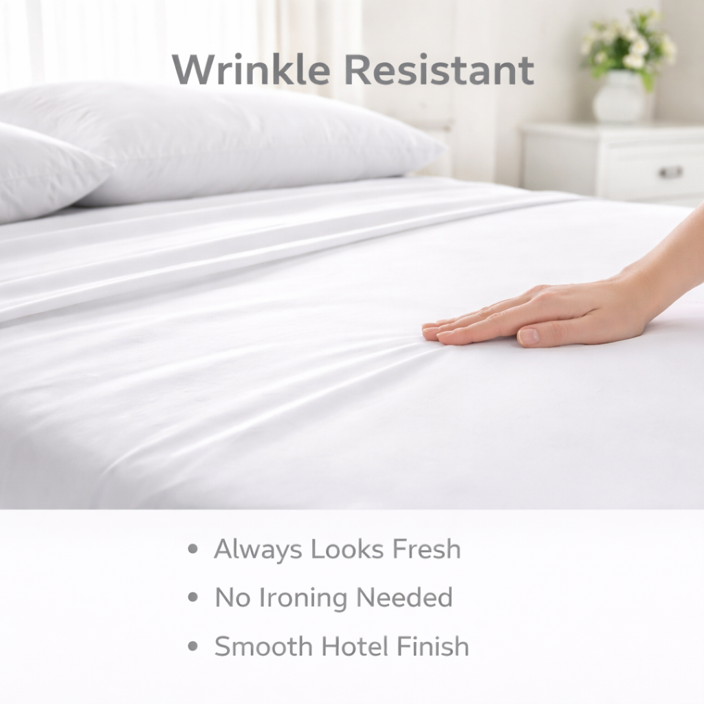 The Modern Egyptian sheet set was created for buyers who want a refined look without giving up easy everyday comfort. It brings together the crisp, inviting feel of hotel-style bedding with the practical benefits a family home needs: softness, wrinkle resistance, and durability.