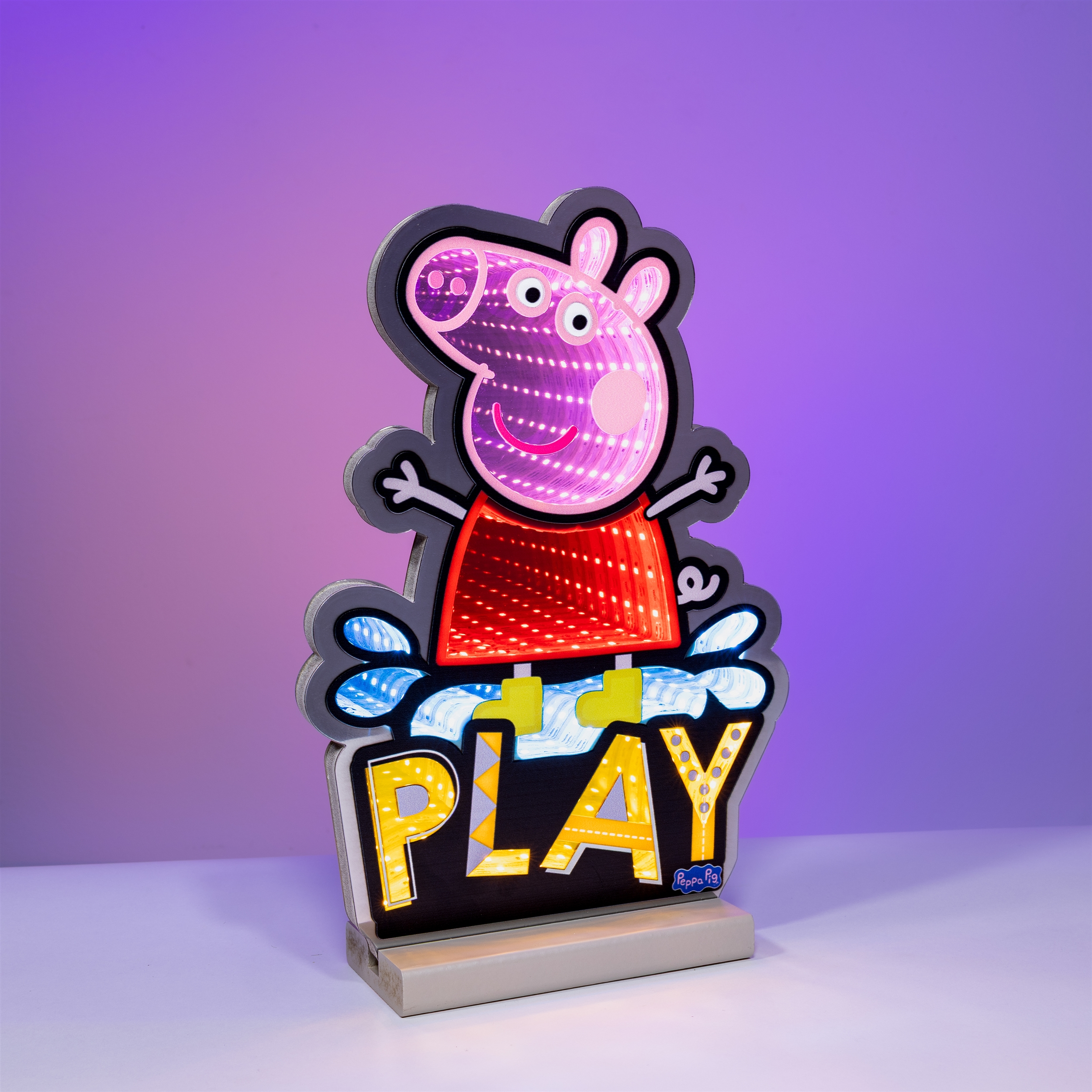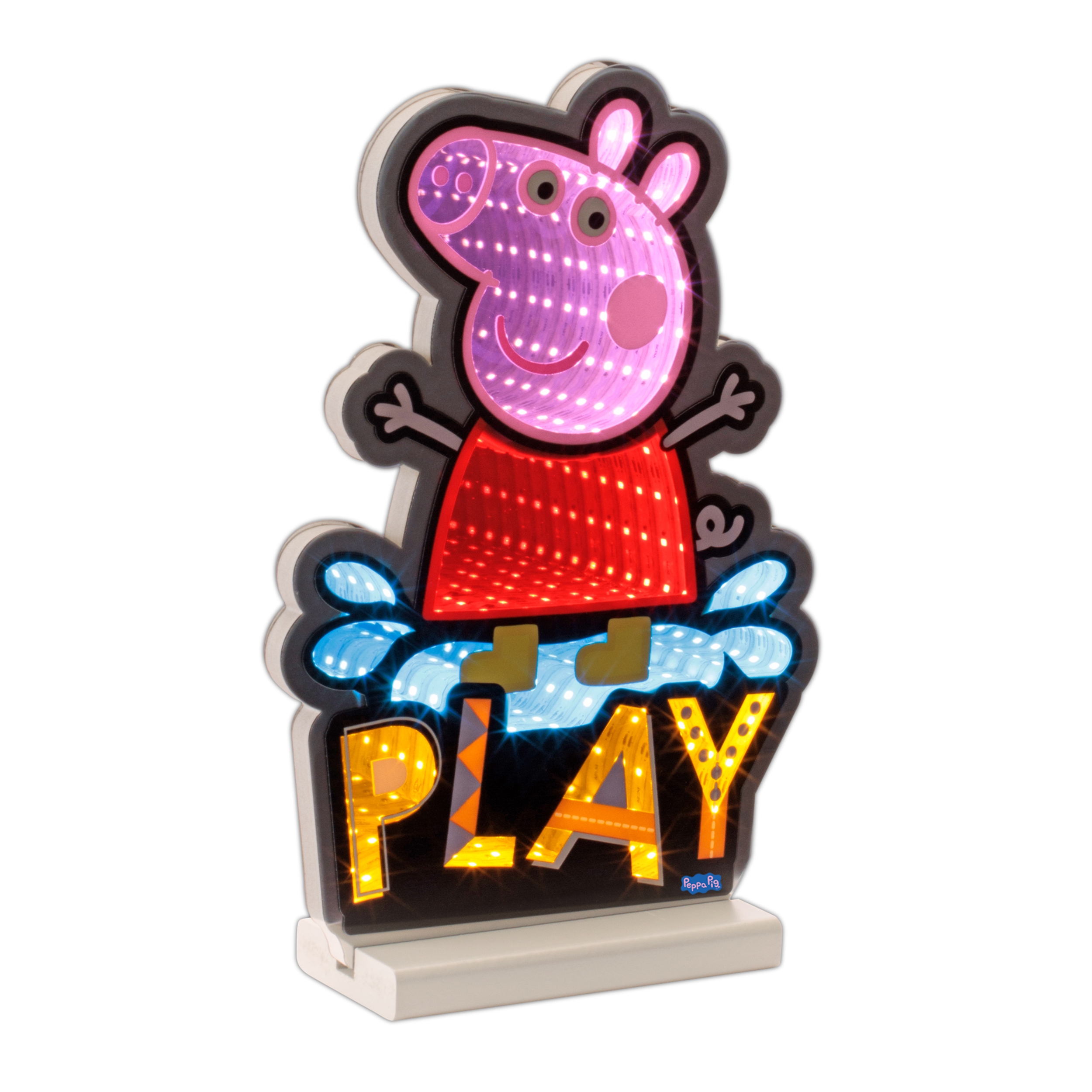 Make a splash of happiness with the Peppa Pig Splash Ekkolight. Compact and full of personality, this LED infinity light captures Peppa s playful spirit as she jumps into a bright, whimsical puddle. Designed around the show s themes of exploration and fun, this light adds a burst of color and excitement to desks, nightstands, or any child s creative space.