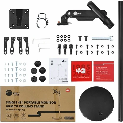 Siig CE-MT5E11-S1 SINGLE 43 INCH PORTABLE MONITOR ARM TV ROLLING STAND-BLACK
