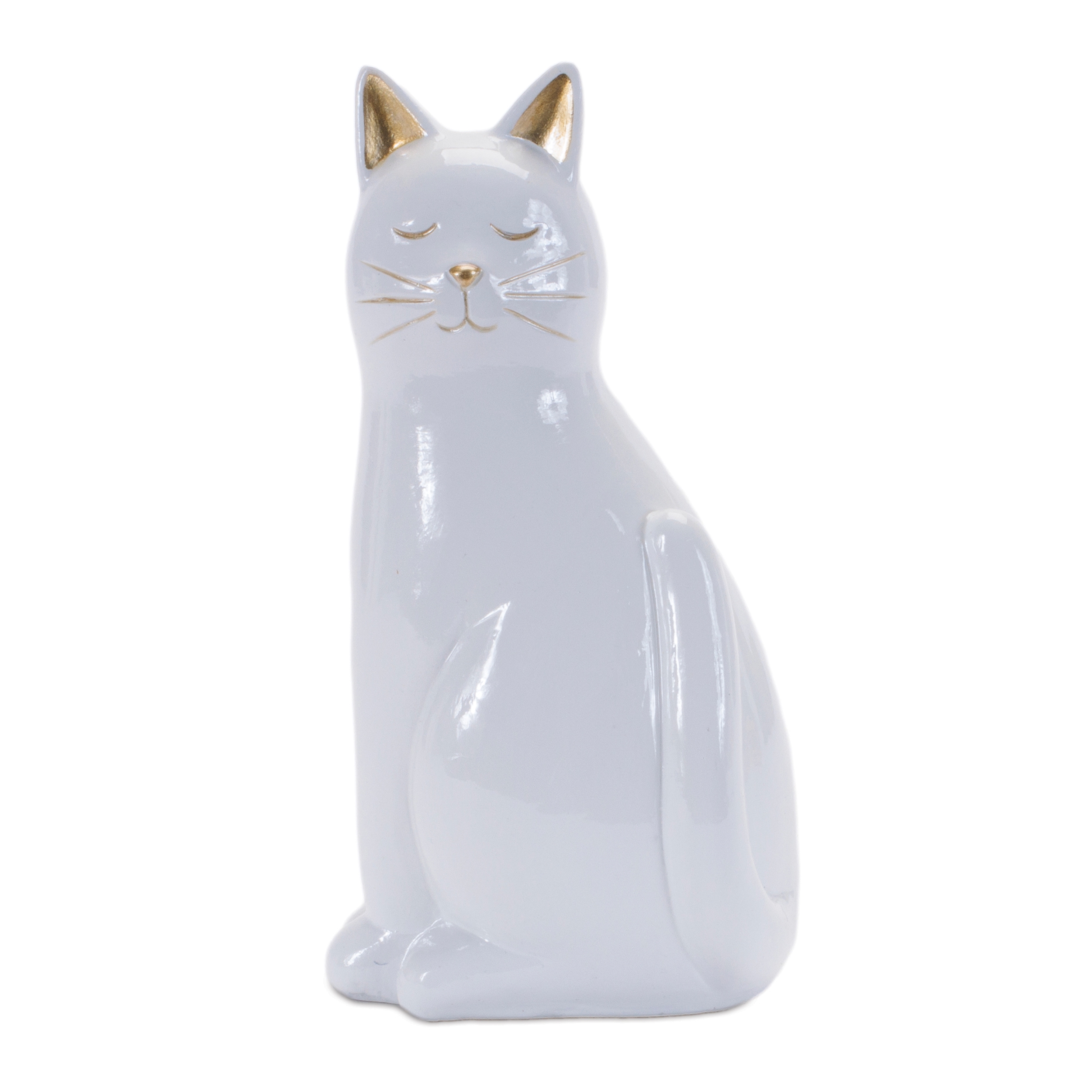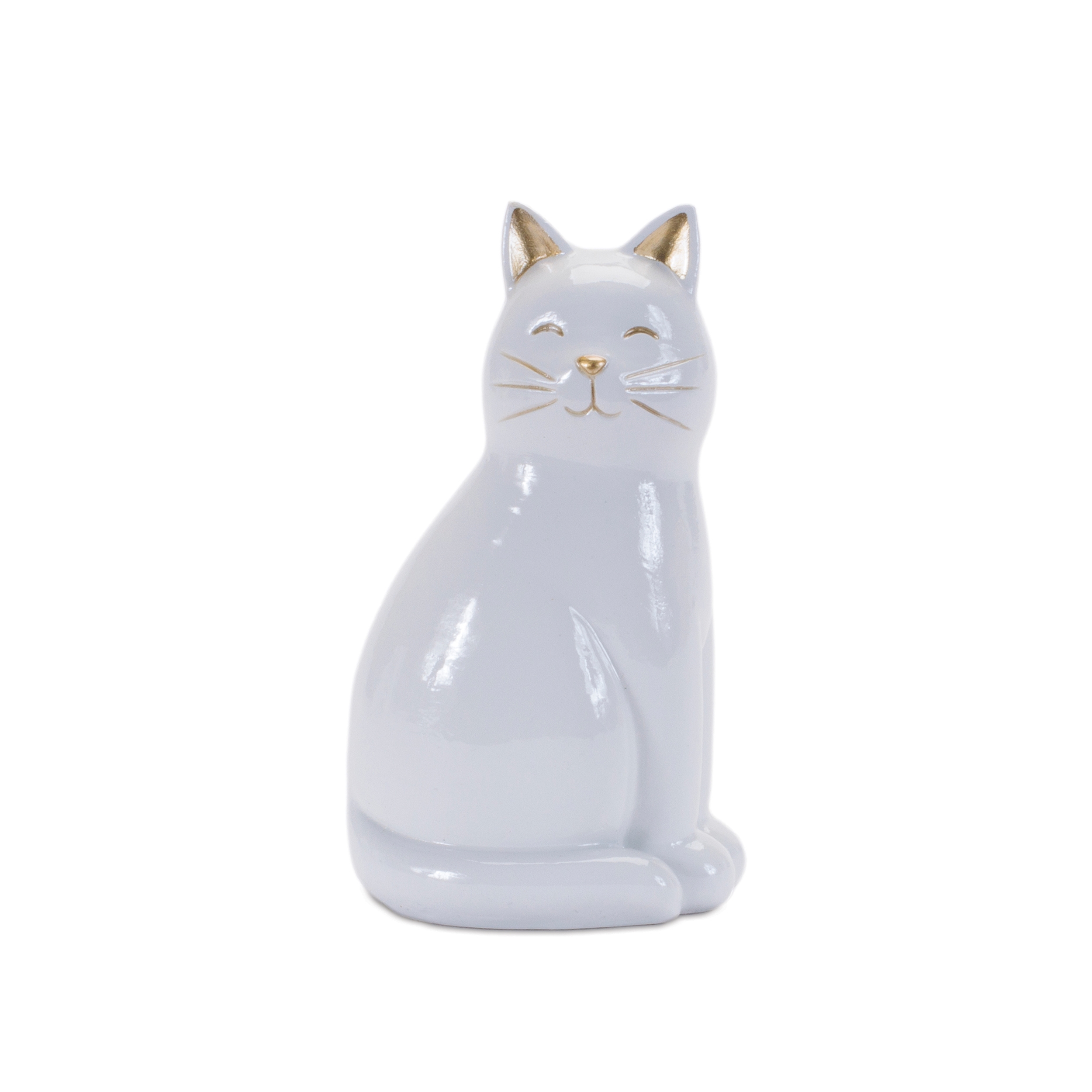 This adorable Sitting Cat Figurine set brings charm and elegance to any space. Featuring chic white and gold tones with a shiny glazed finish, these playful cats are designed with etched faces and delicate whisker accents. Sold in a set of six, including three assorted designs, they make the perfect gift for cat lovers. Display them on your bookshelf or tabletops for a friendly and sophisticated touch.