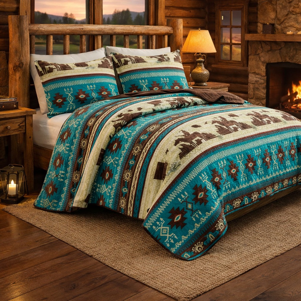 Southwestern Design 3 Piece Quilted Bedspread Set |