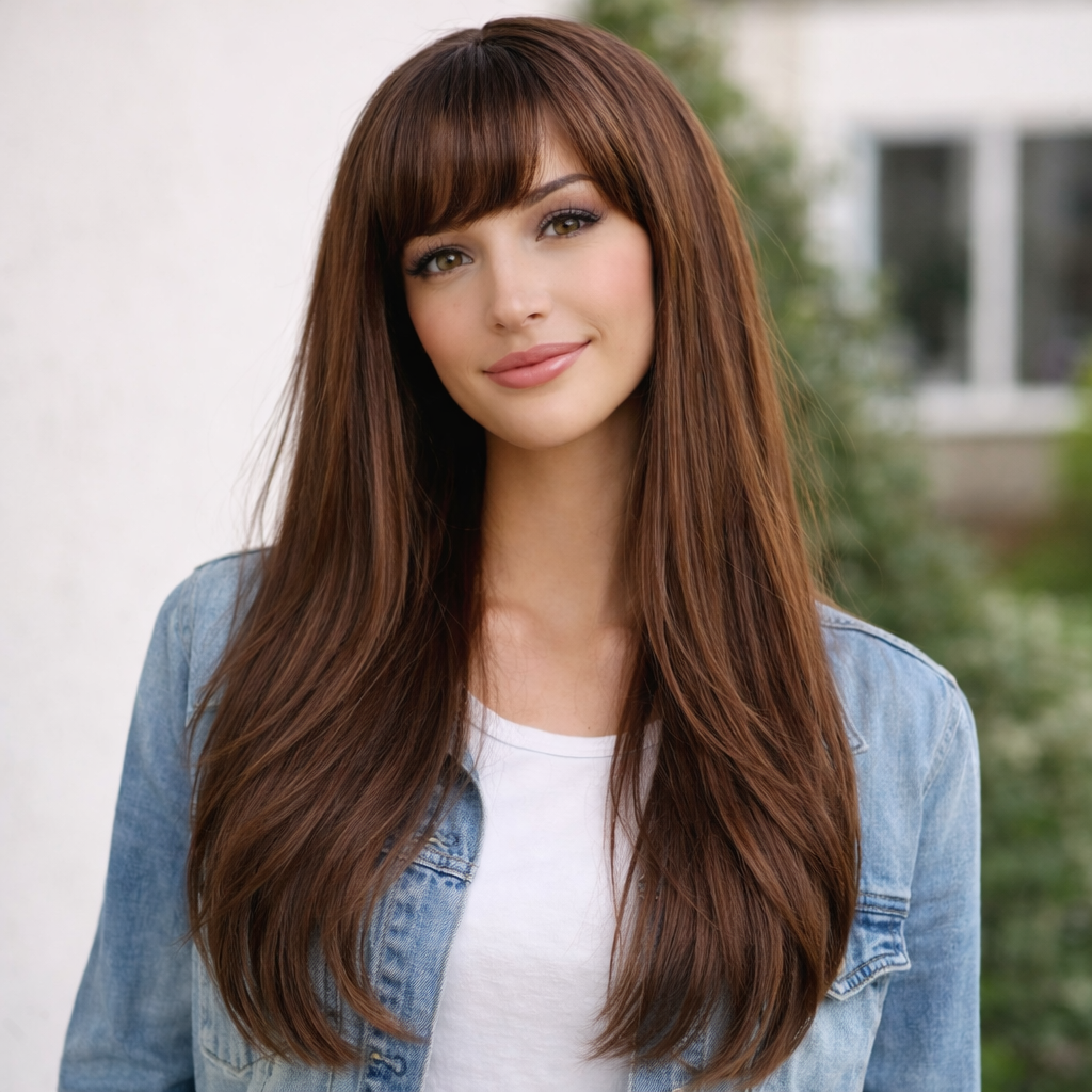 Elevate your everyday look with our Chestnut Brown Straight Wig. Designed for ultimate versatility, this chest-length wig offers a sleek, polished finish that transitions perfectly from a day at the office to a night out with friends. The high-quality synthetic fibers provide a natural luster without the "fake" shine.
