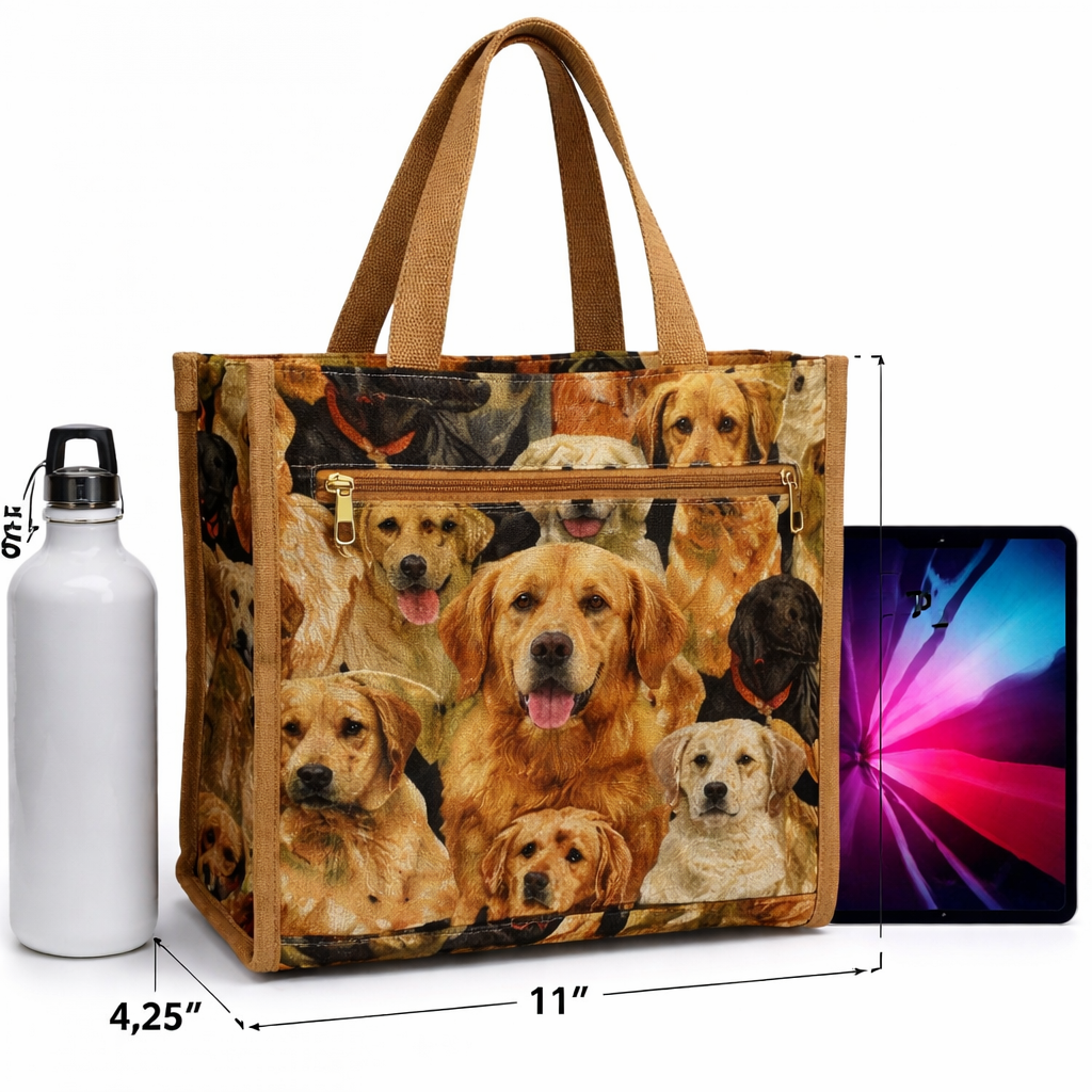 Perfect for shopping trips, everyday errands, or as a thoughtful gift for dog lovers. The compact yet roomy design provides convenient organization while showcasing a charming tapestry dog pattern.
