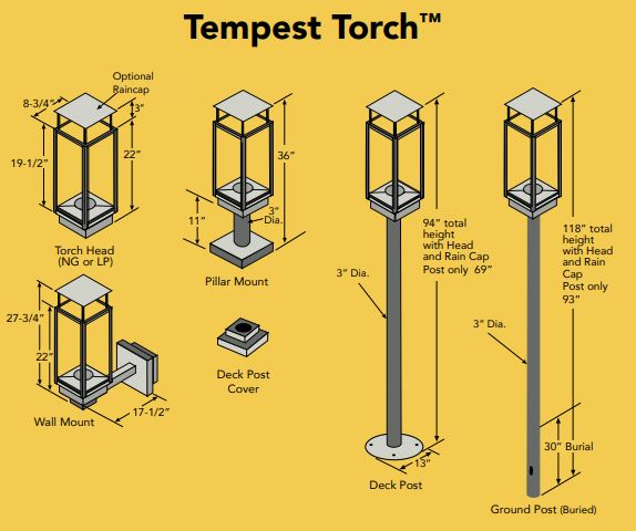• Can be installed (4) Different Ways: Ground Post, Deck Post, Pillar Mount or Wall Mount