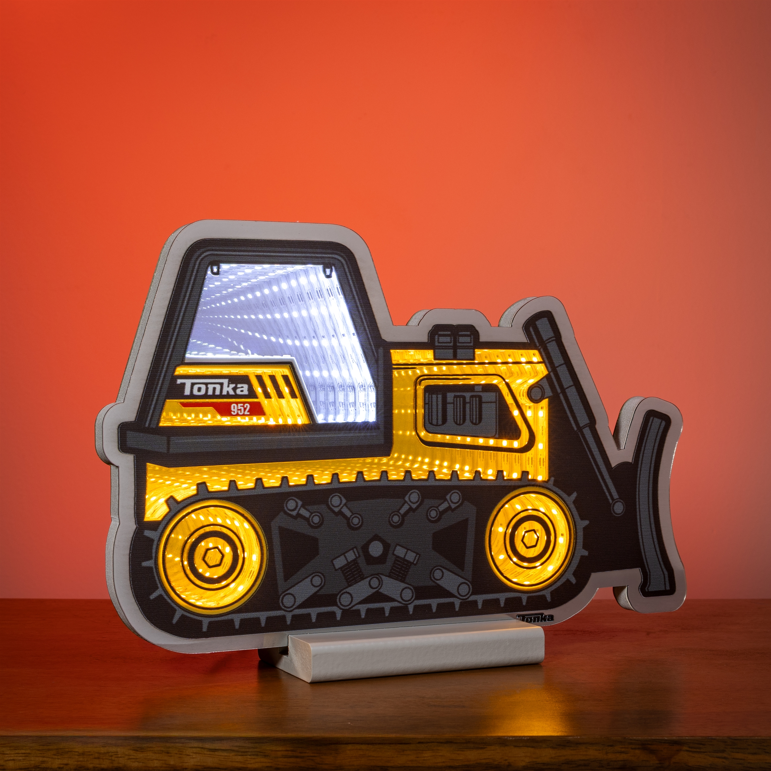 Build big imagination with the Tonka Bulldozer Ekkolight. ThisLED infinity d cor piece showcases the iconic Tonka bulldozer glowing with rugged, industrial flair. Reflecting Tonka s legacy of durability, strength, and hands-on play, this piece is perfect for young construction fans or nostalgic collectors who appreciate classic tough-to-the-core design.