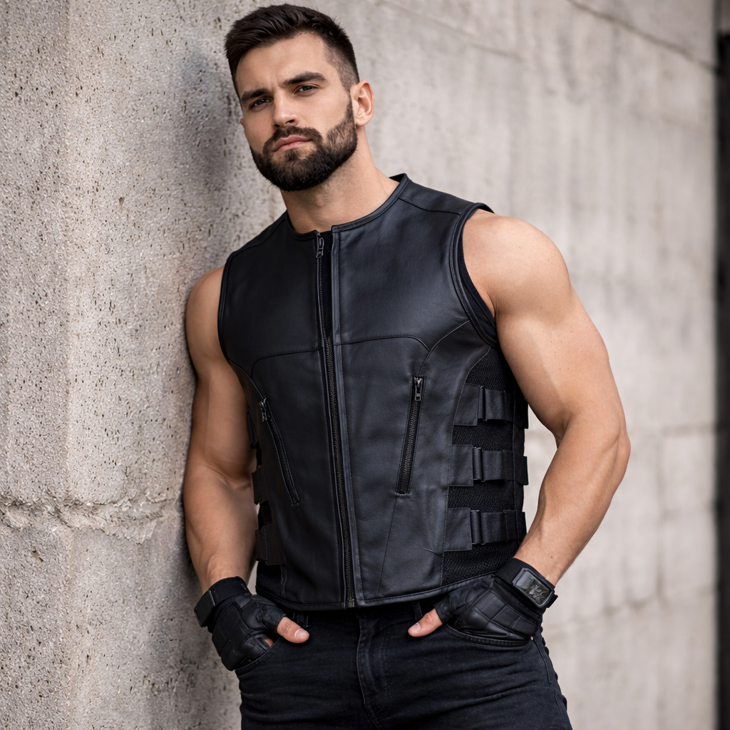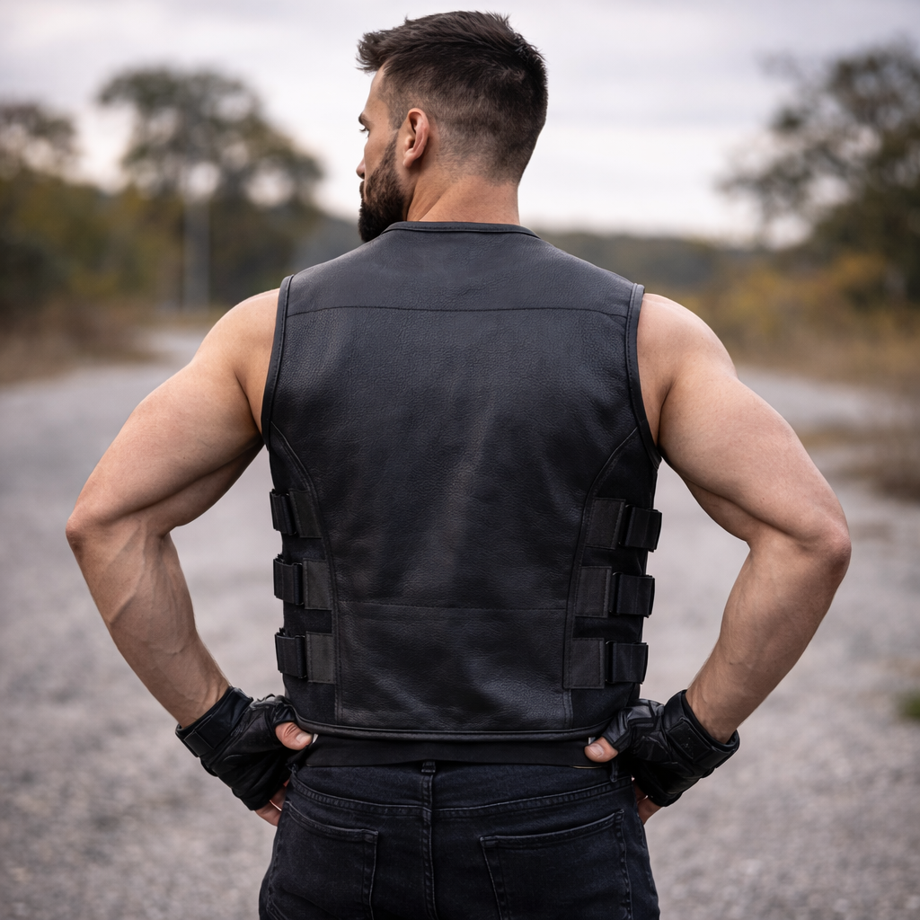 Men's SWAT Style Premium Leather Motorcycle Vest