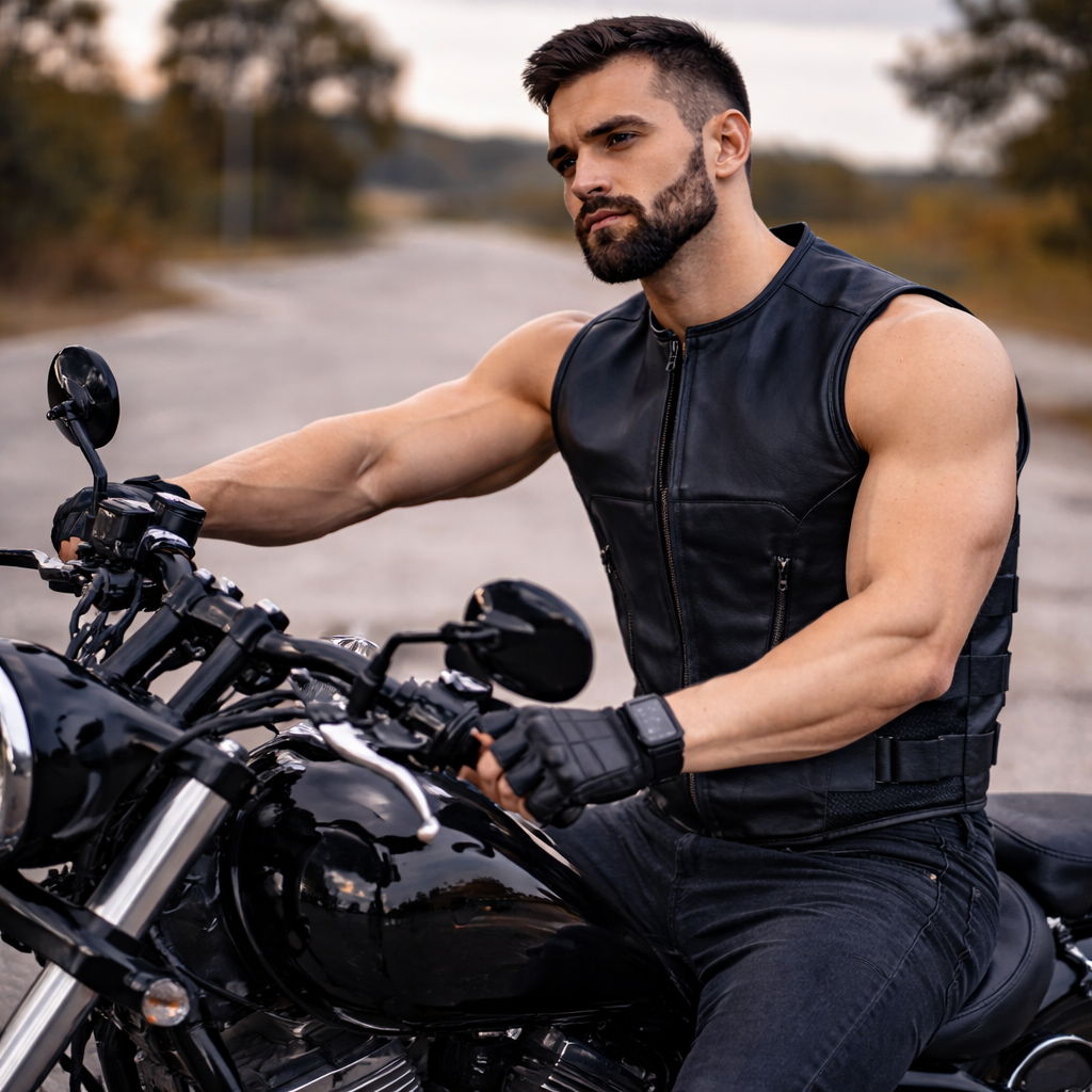 This vest combines the bold presence of tactical-inspired styling with the classic appeal of a black leather motorcycle vest. The side adjusters allow for a secure, personalized fit, while the premium cowhide construction is made to handle regular wear. It is a strong choice for riders, club members, and anyone looking for a tougher biker look.