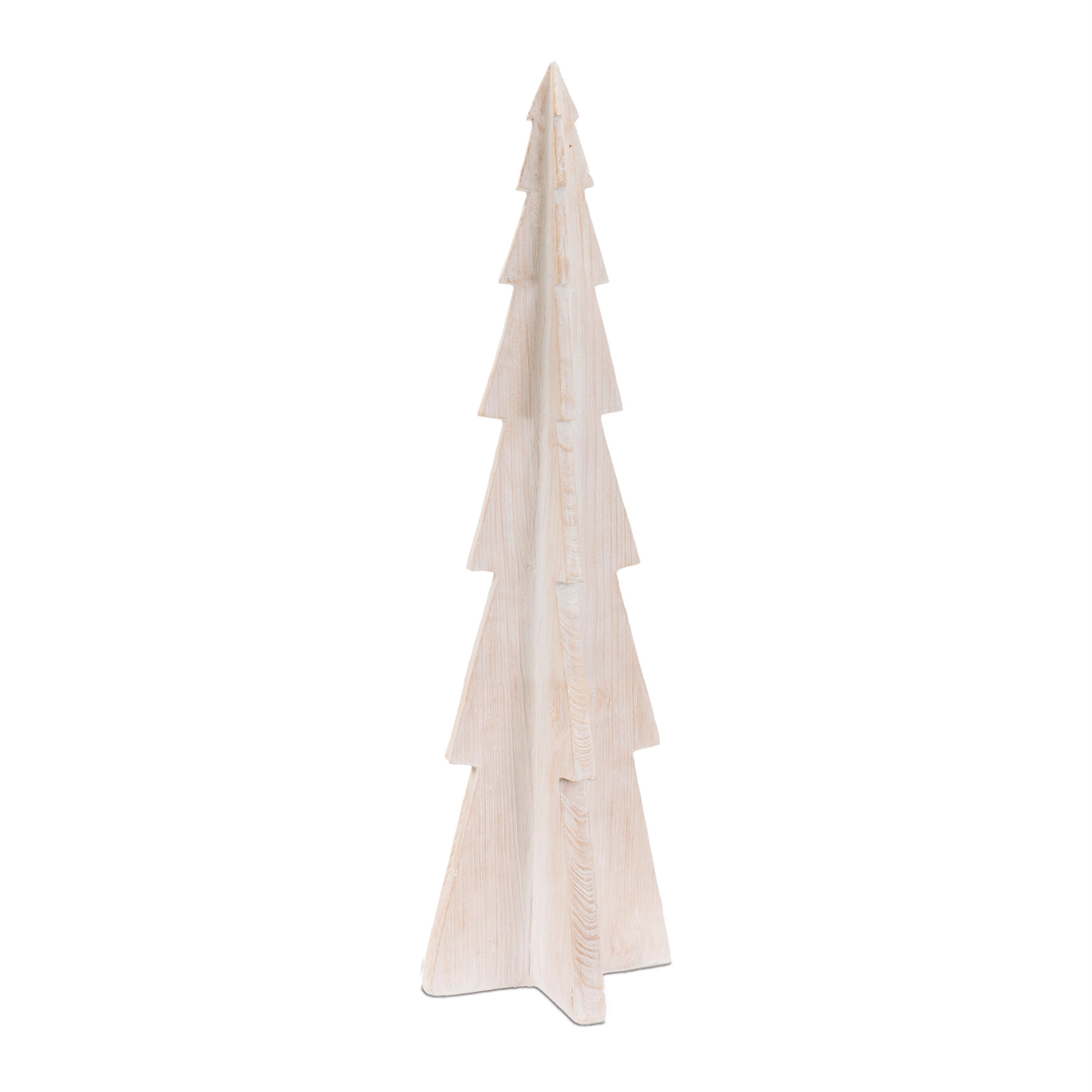 Create a serene winter wonderland with this 50" Whitewashed Resin Tree. Its tall, stylized silhouette and subtle whitewashed finish evoke the quiet beauty of snowy forests, while the carved wood-grain texture adds rustic charm. Perfect as a statement piece in your holiday d cor, this tree brings height, elegance, and a soft seasonal glow to any space.