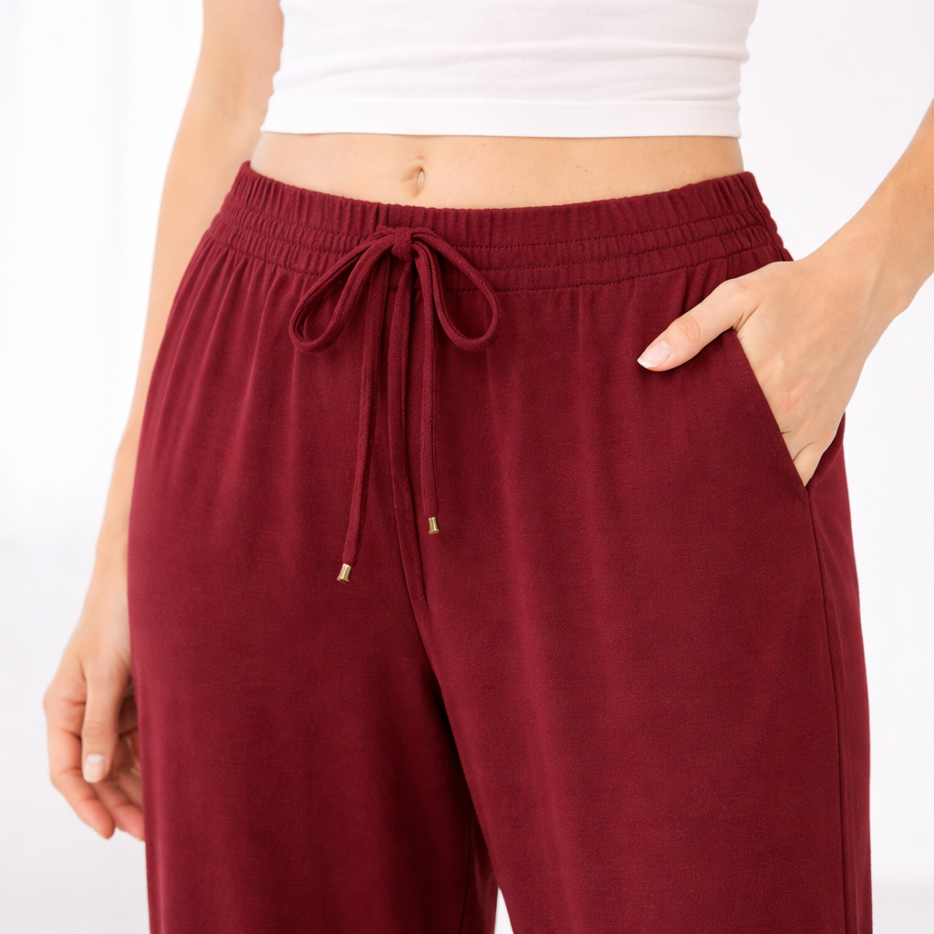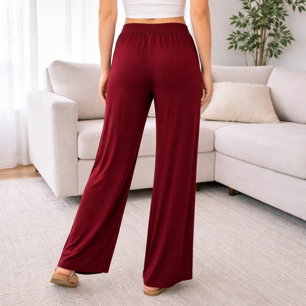 Soft, easy, and flattering — these wide leg lounge pants are made for everyday comfort without looking sloppy. The relaxed drape and clean wide-leg silhouette make them a go-to for working from home, errands, travel, or casual office days.