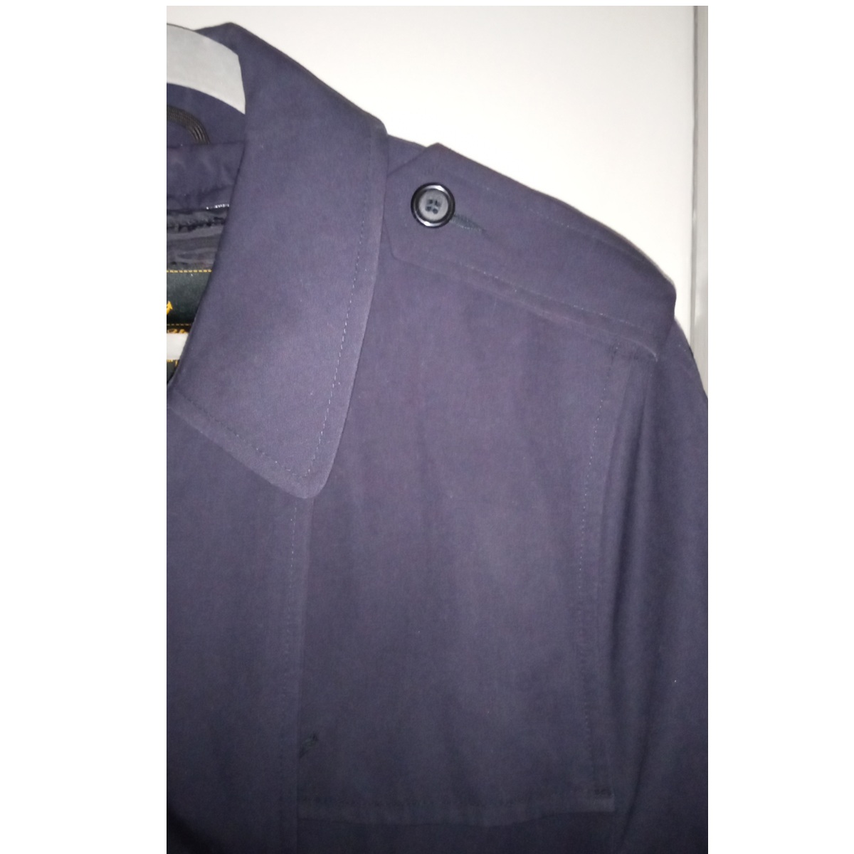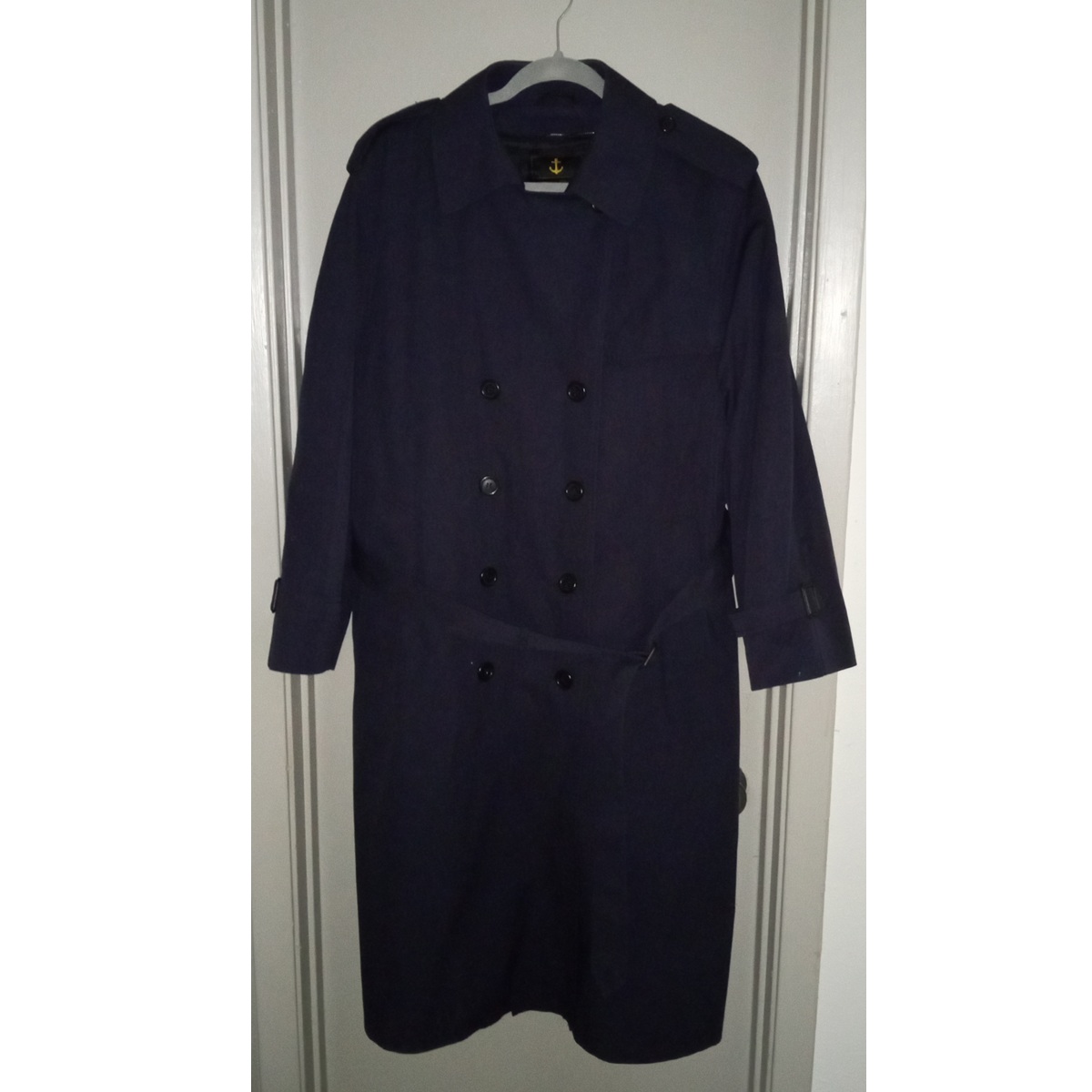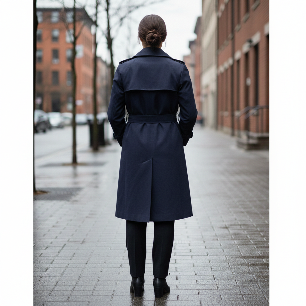 Upgrade your outerwear collection with this timeless navy blue trench coat. Specifically designed for a 16P (Petite) frame, this overcoat offers a tailored look without the extra bulk or length of standard sizing.